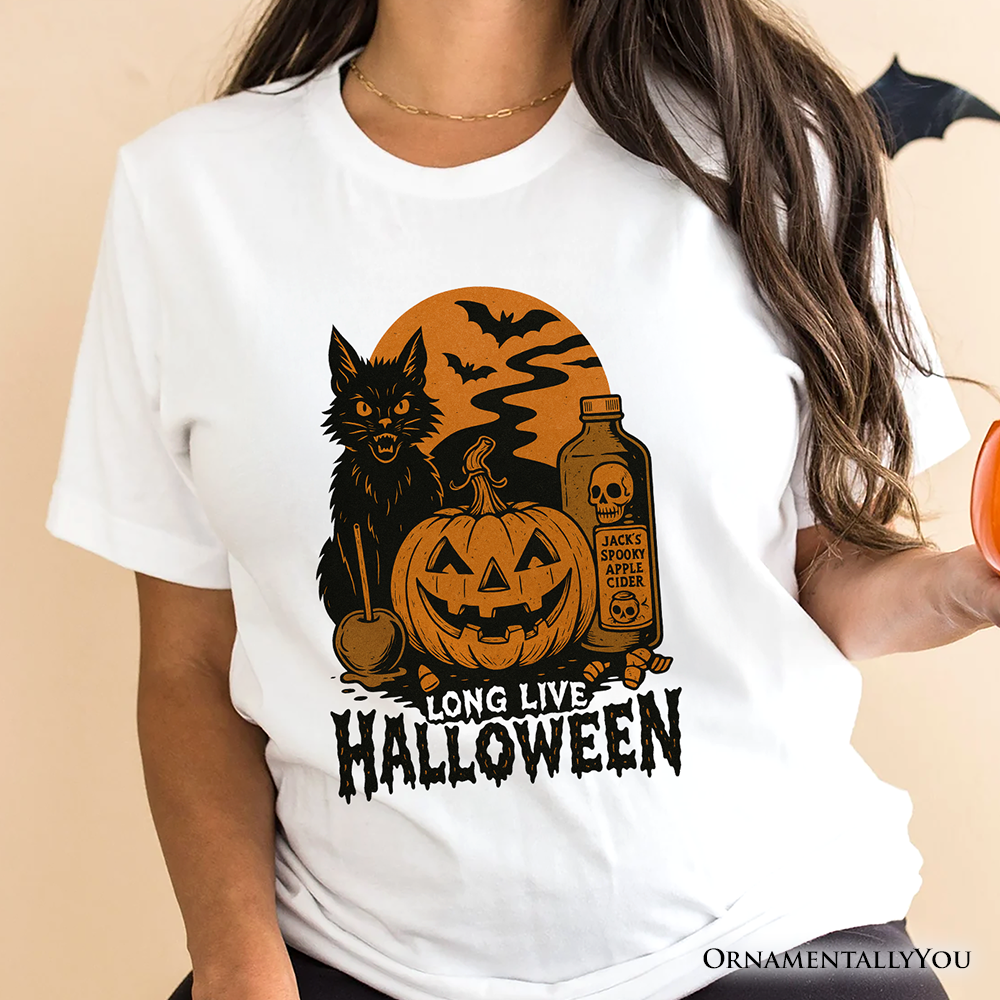 Long Live Halloween T-Shirt, Retro Black Cat Pumpkin Tee for Horror Fans