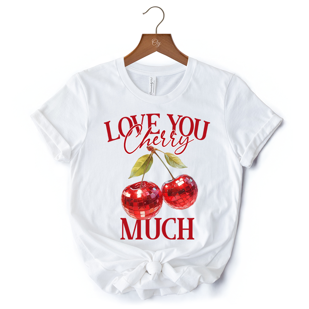 Love You Cherry Much T-Shirt, Retro Disco White Tee for Fun Women