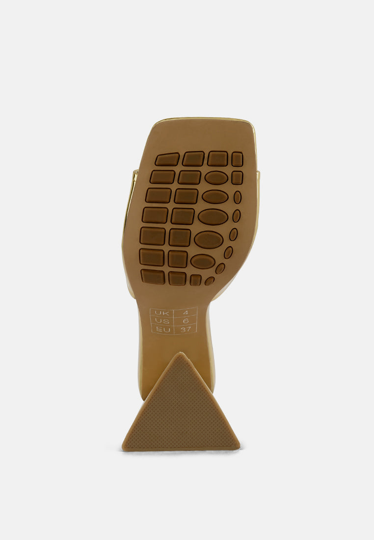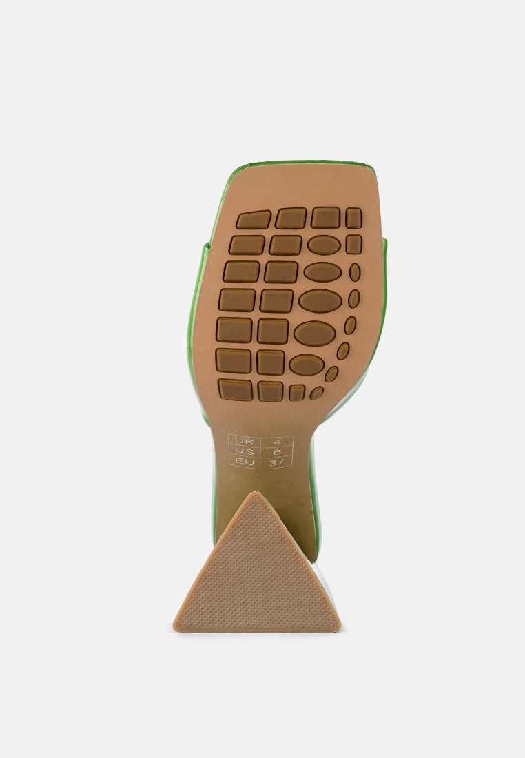 Get ready to step into the limelight with these dazzling high triangular block-heeled slider sandals made from patent faux leather. These block slip-ons are true show-stoppers that can effortlessly complement any outfit you wear for almost any event!