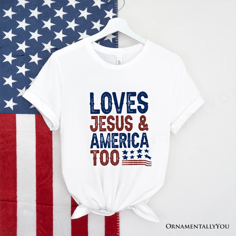 Loves Jesus and America Too T-Shirt, Patriotic Tee for Proud Americans
