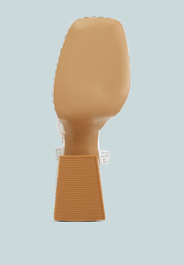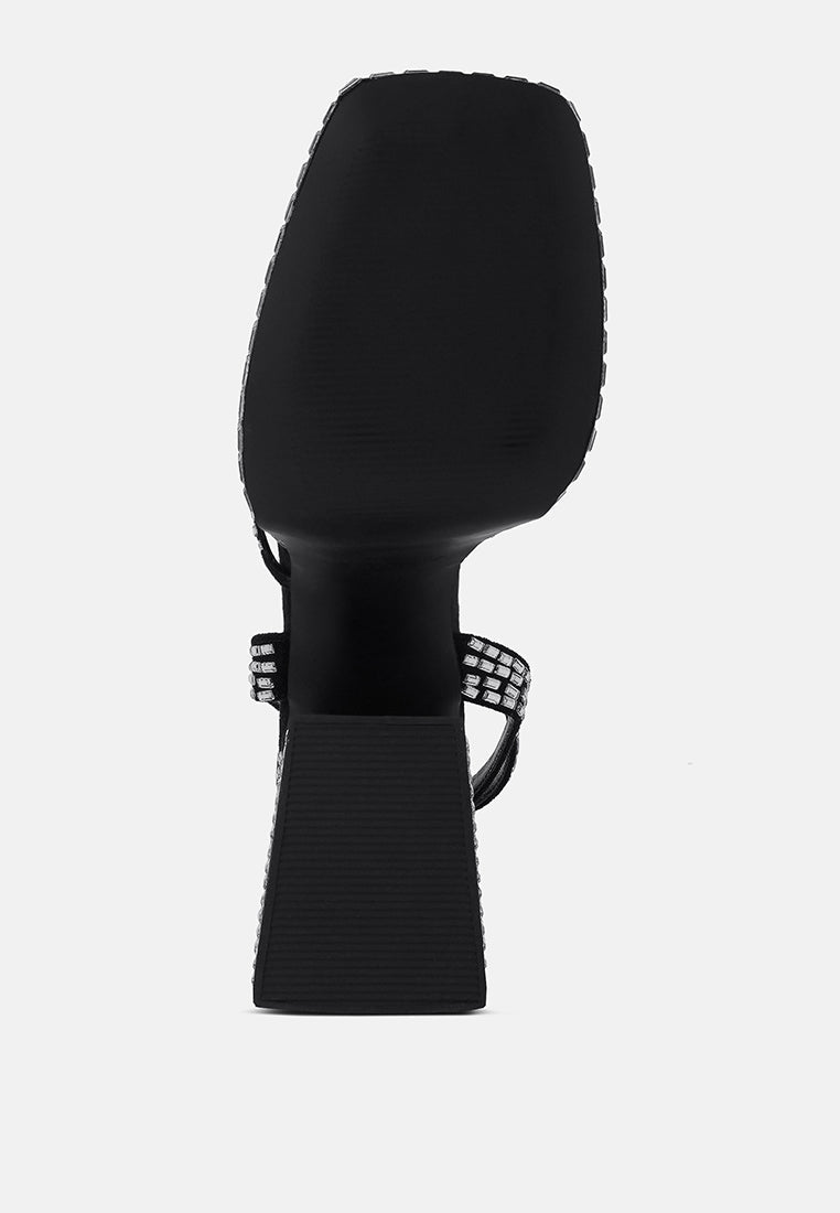 Lustrous Mirror Embellished Flare Block Heel Sandals