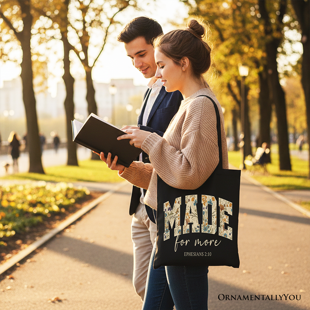 Made For More Ephesians 2:10 Floral Faithful Christians Canvas Tote Bag, Jesus Bible Verse Gift Shopper