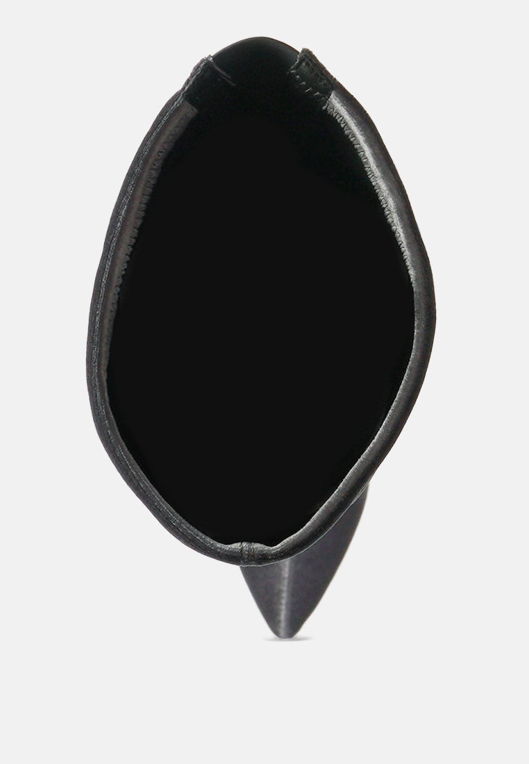 Sleek, shiny, chic! The beautiful stretch high heel boots are a vision to behold with the lovely velvet finish that looks lush. The sharpness of the high heel stilettos and pointed toe is stylish and looks bold and alluring. The light cushion insole also supports feet well and cuts strain.