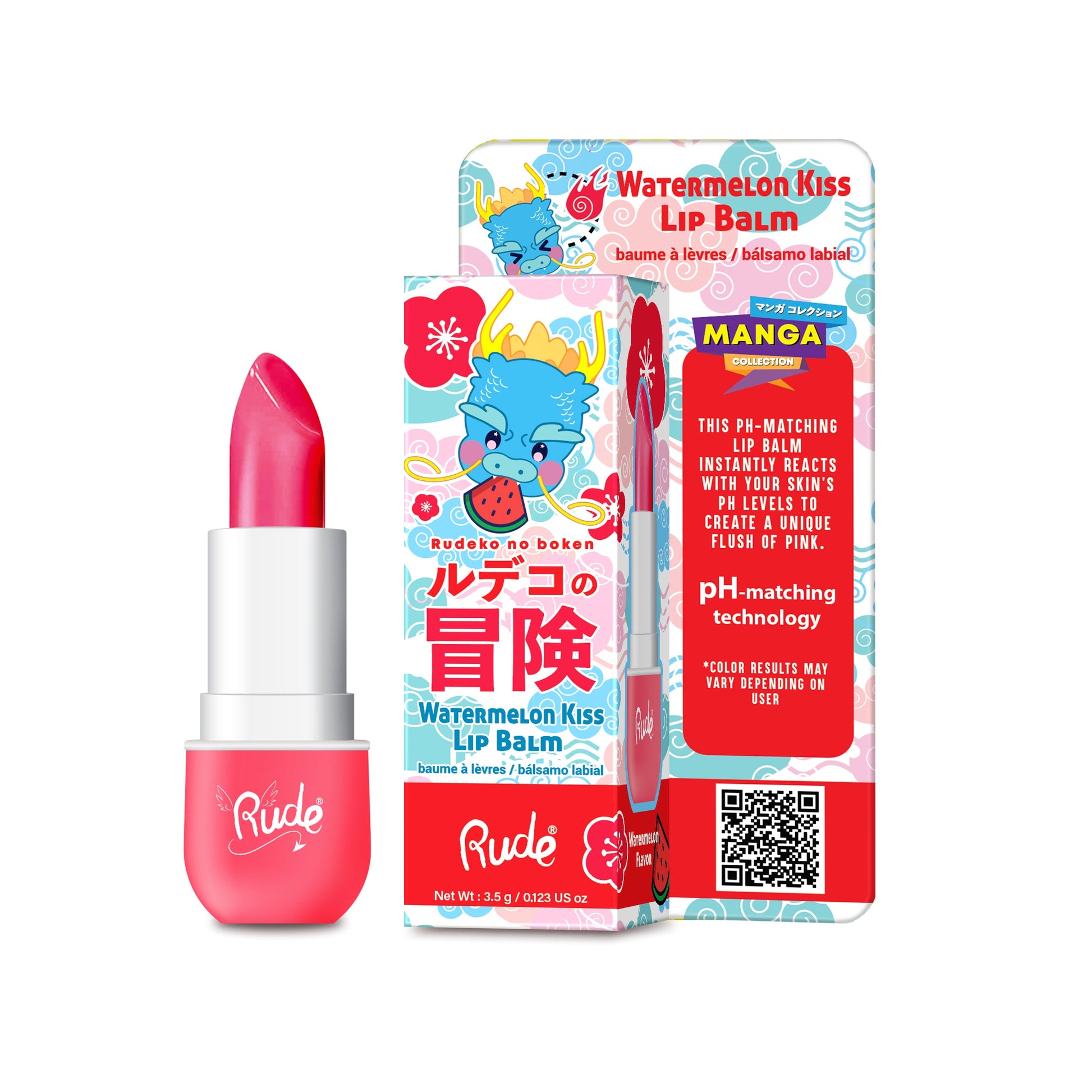 This pH-matching lip balm instantly reacts with your skin’s pH levels to create a unique flush of pink. Rude's Manga Collection Lip Balm comes in four deliciously fruity scents, so you can choose the best one to match your character!