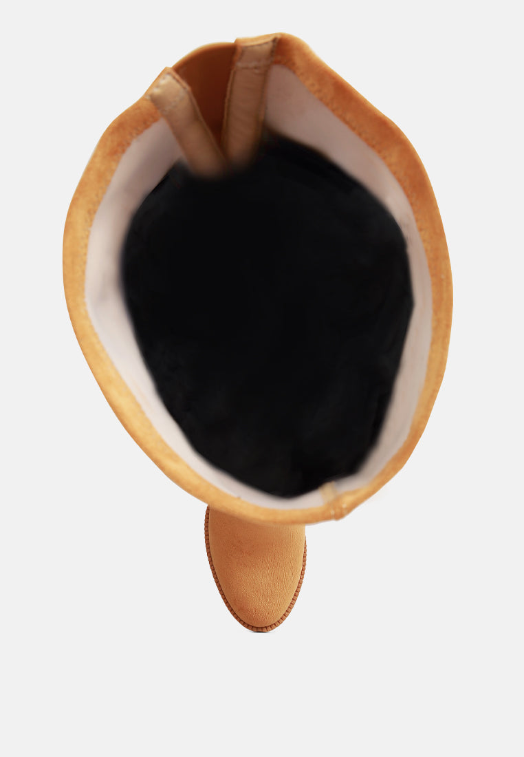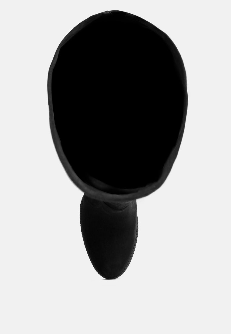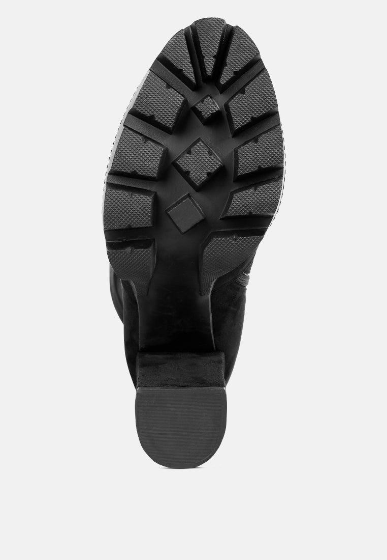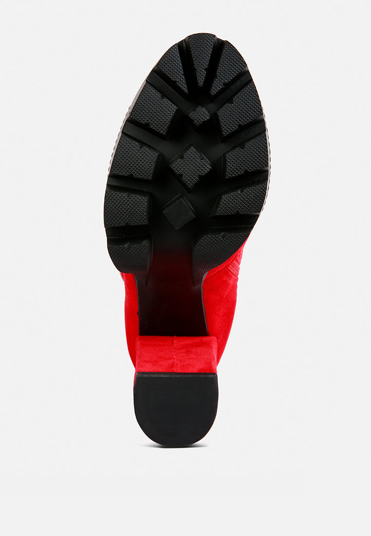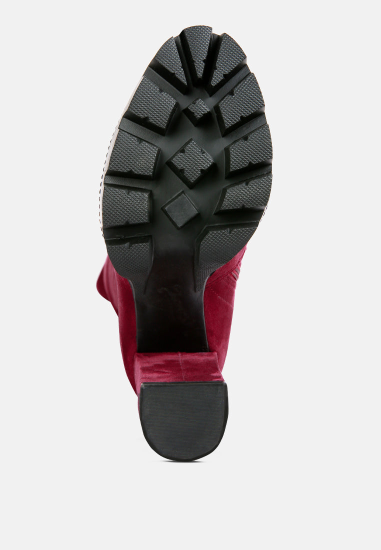 A winter perfect shoe is here. Our Maple Faux Suede Long Boots is the answer to all your winter shoe problems. These gorgeous-looking platform boots have sturdy lug soles and front paneling. It comes with a slightly padded insole and a side zipper for easy access. With style being a plus it even gives you the warmth and comfort of a woolen blanket. For a cold winter day, these heeled boots will be the hug your feet always wanted, not to mention the stand-out style will heat the outside as well with its hotness.