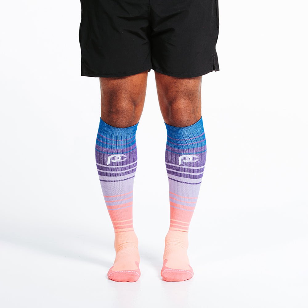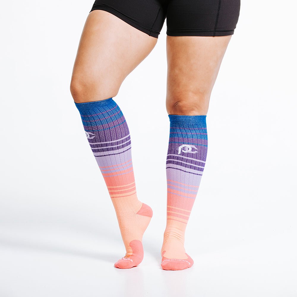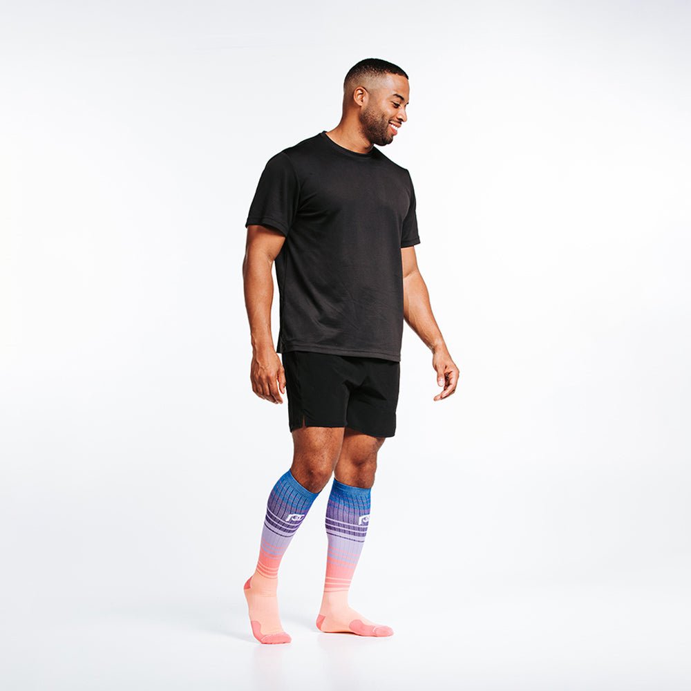 Turn heads with the striking and best-selling Florida Skies Marathon sock. This customer favorite is the perfect sock for all your activities and post-activity recovery. Now available in new Wide-Calf sizes.