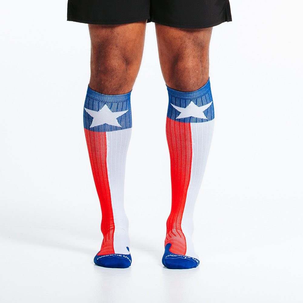 Inspired by the Lone Star State, you're sure to shine big and shine bright with Texas Star compression socks from our State of Mind Collection.