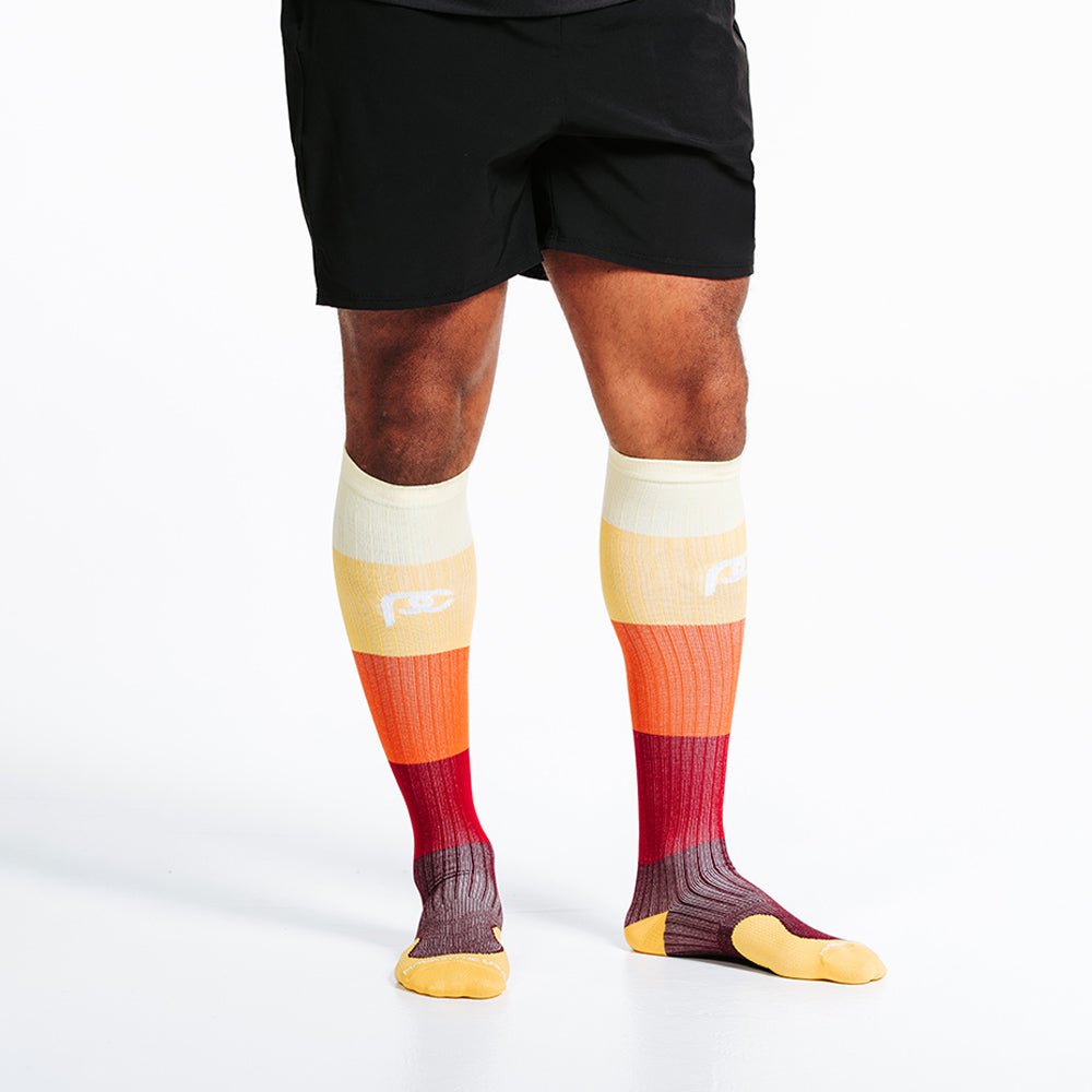 A highlight of our State of Mind Collection, these over-the-calf compression socks boast a weave of stunning Utah sunset colors inspired by the Beehive State.