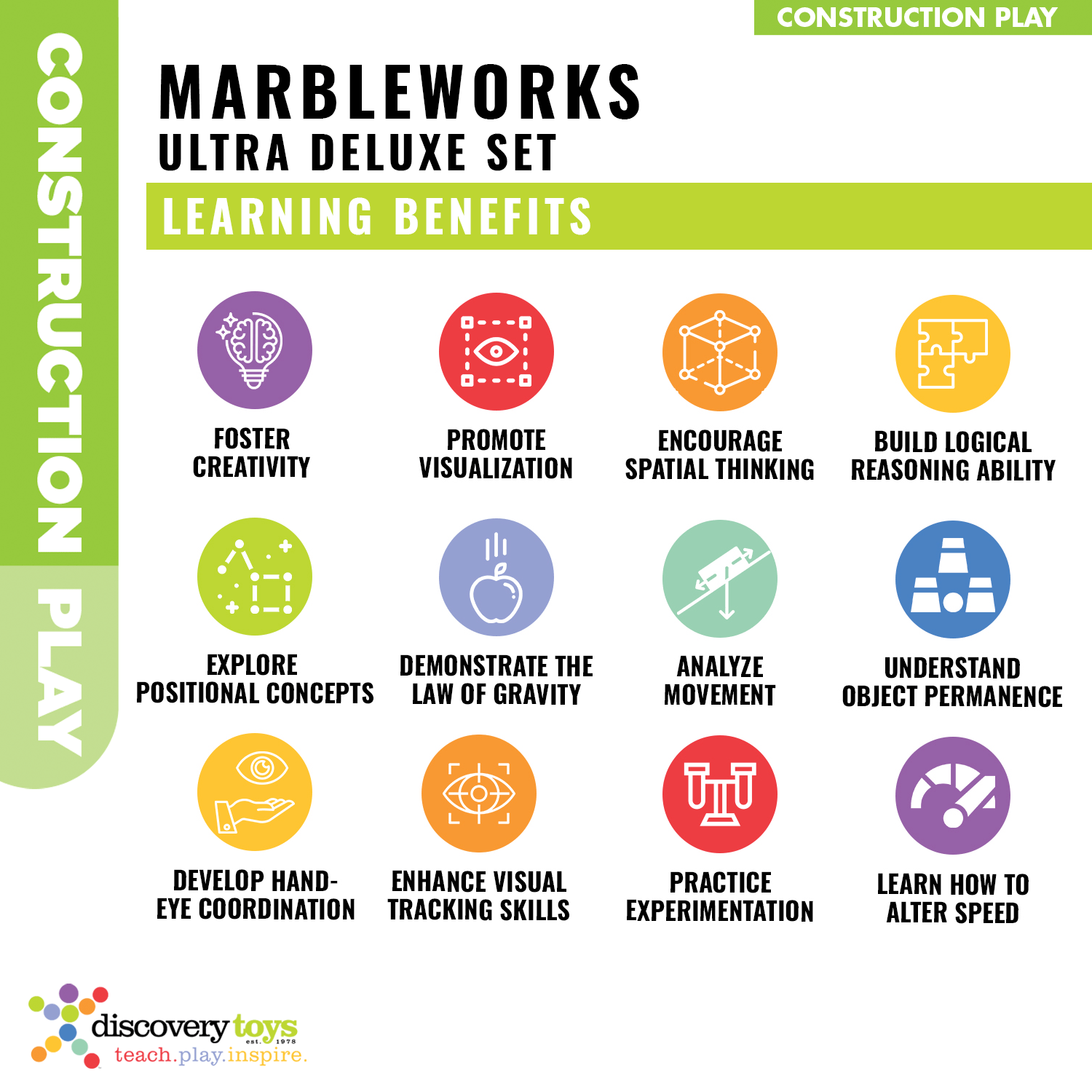 Marbleworks Marble Run products inspire girls AND boys to pursue higher education in the fields of engineering, math and technology. As the marbles speed through the course, children learn about physics, the laws of gravity, object permanence, and cause and effect.
