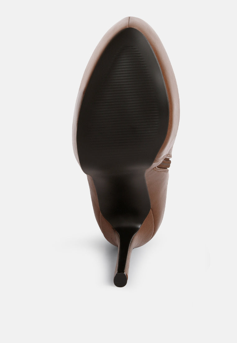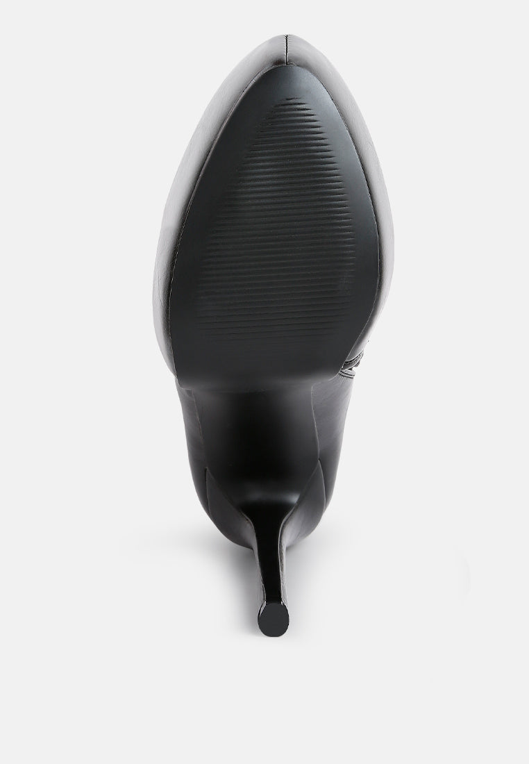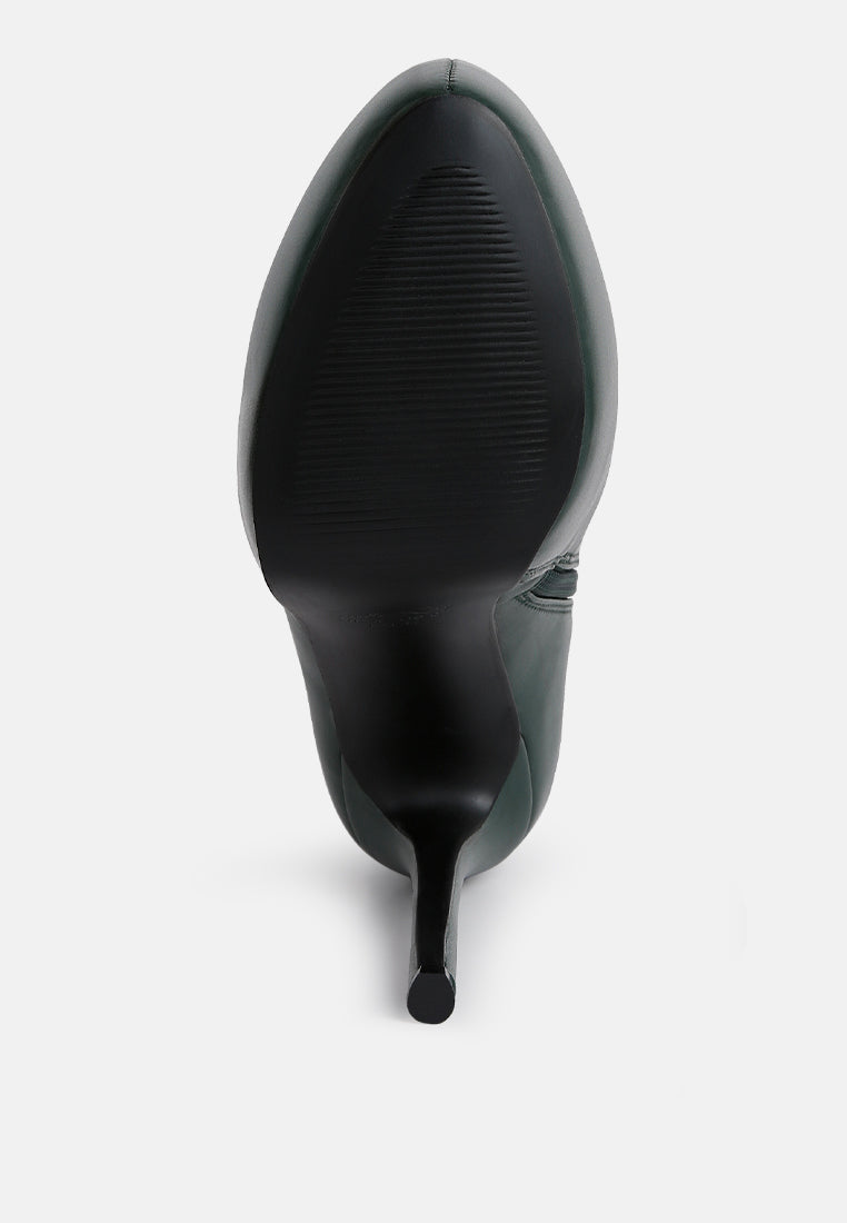 Marsha High Platform Stiletto Ankle Boots are the perfect heeled boots for just any day. These heeled boots are made using faux leather with elasticated gussets. With front elevation, slim heels, and crinkle texture, it gives you the look of a summer haze on a cold winter morning. This head turner is sure to make your day with tons of compliments. These girls' boots are a must have in every women's collection.