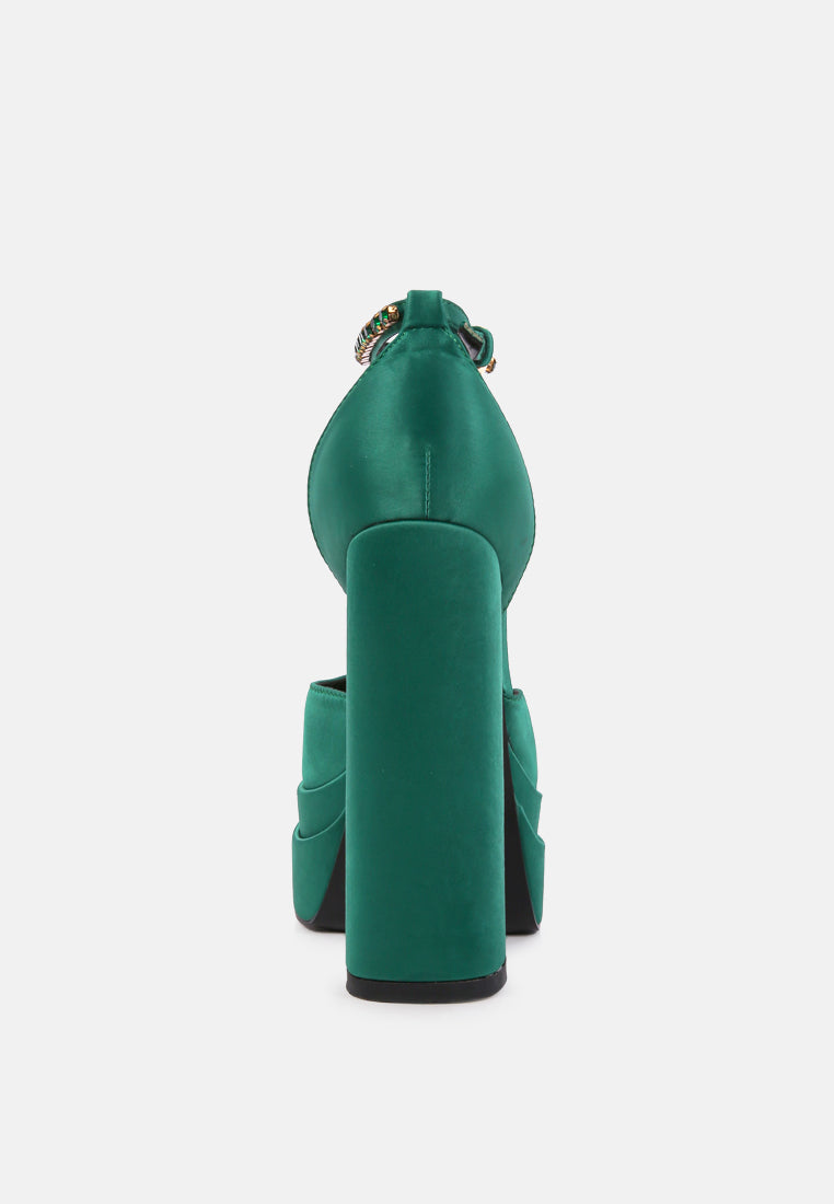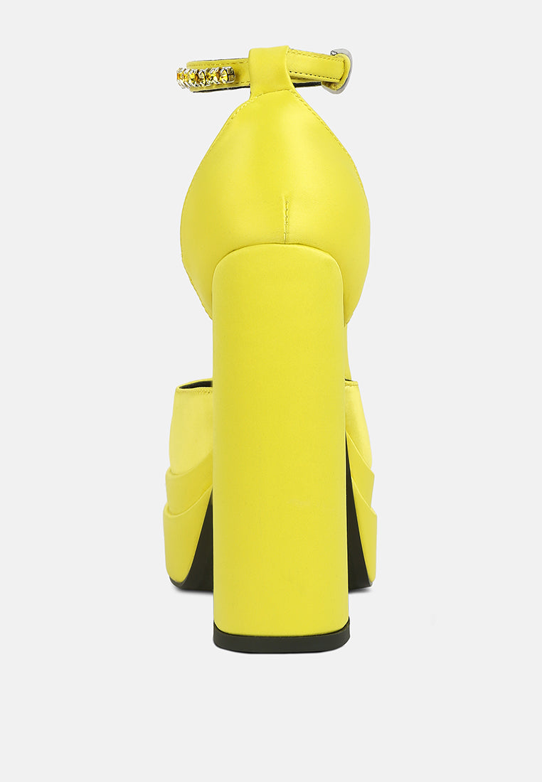 The sky-high platform sandals are a beauty to behold with diamante embellished ankle strap. It comes with two ankle straps for you to choose from: one with rhinestones and another to keep it just simple! The satin finish look luscious and the soft insole cuts strain. These are great for fancy parties such as the bachelorette, cocktail party, weddings, etc.