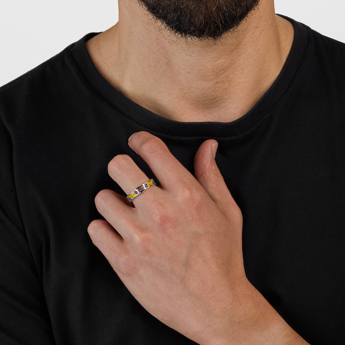 Handcrafted in sterling silver, the unisex Wolverine Belt Ring is a bold and versatile accessory designed for fans of Marvel's favorite clawed mutant. Inspired by Logan’s classic retro suit, the ring features hand-painted enamel encircling the entire band in his iconic yellow and blue colors. At the center of the ring, mirroring Wolverine’s belt seen on-screen, sits a striking enameled black and red X-Men logo, adding a vibrant pop of color and unmistakable character to the design.
