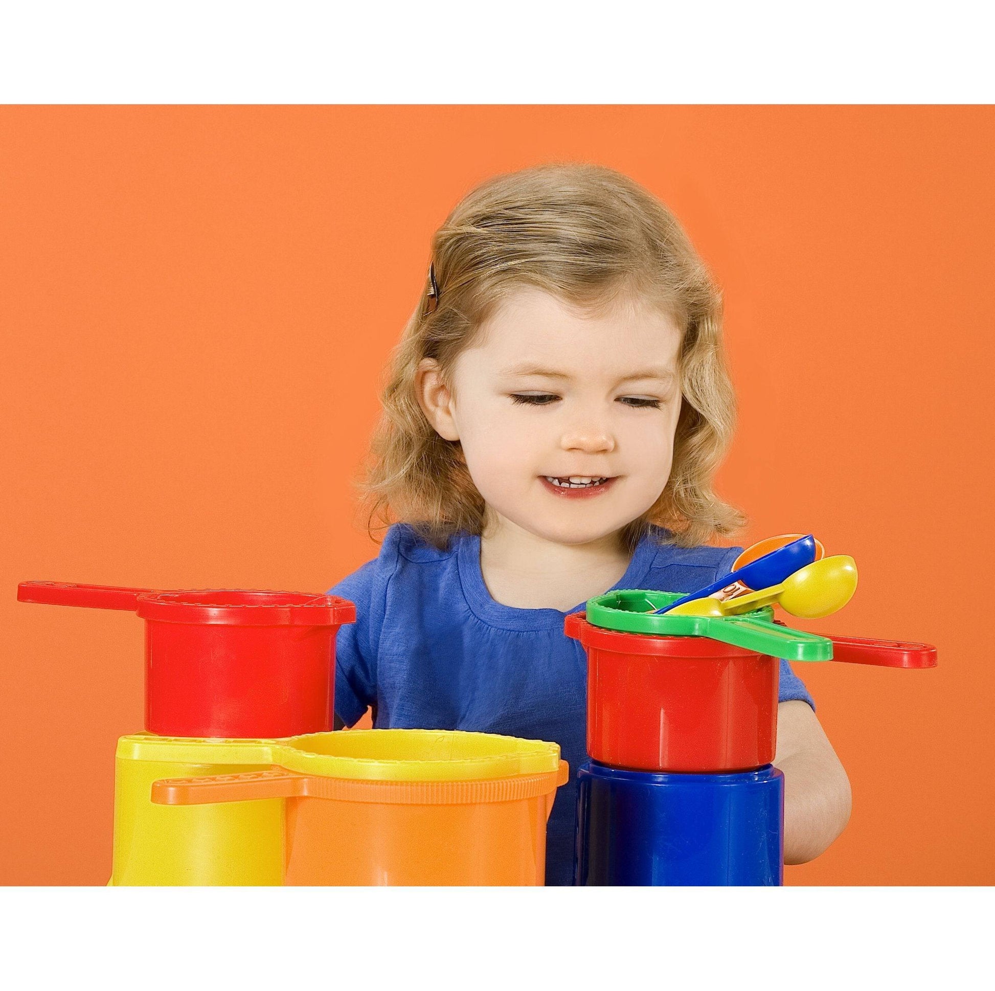 Watch learning in action with this kitchen-themed set. Use to scoop, dump, fill, nest, stack, mold and stamp. Spoons and and pots are all volumetrically correct & sequentially sized for interaction. Volumes can be added or subtracted. Introduce a host of fundamental concepts related to counting, sorting, volume, size, patterns, measurement, clock time & more. 5 progressive pots, 5 two-sided spoons, guide with 12+ activities. Designed to interact with Measure Up!® Cups.