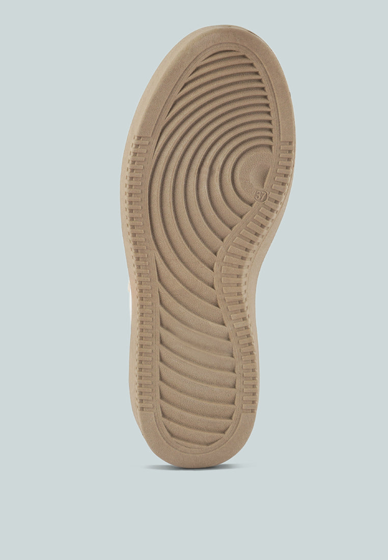 Solid sneakers boasting unique stitch detailing and elevated flatform lug soles epitomize fashion-forward footwear. The intricate stitching adds a distinct touch, elevating these kicks beyond the ordinary. Meanwhile, the chunky flatform lug soles offer a bold statement while providing reliable traction and comfort.