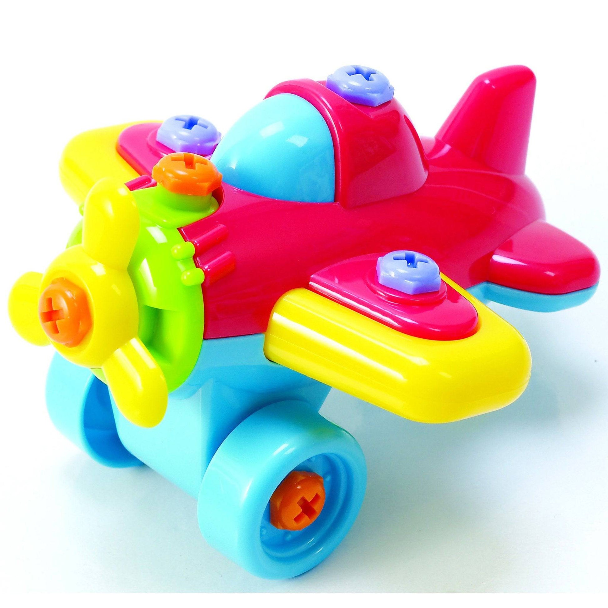 This junior-mechanic set has a working power tool and a shop full of parts to build three free-wheeling vehicles! A motorcycle, prop plane, and race car are sized right for small hands and feature moving parts. Includes tool box, dull child-safe electric power drill and manual screwdriver, and extra screws. Everything stores neatly in portable storage box. Requires 2 AA batteries, not included.