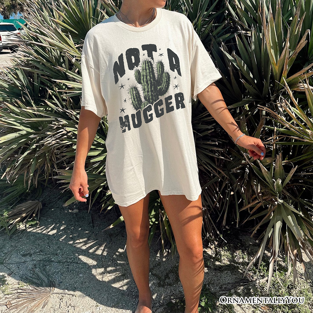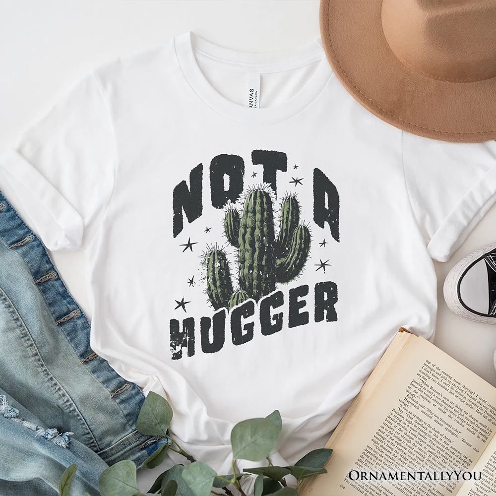 Not a Hugger T-Shirt With Cactus, Funny Retro White and Natural Tee for Sarcastic Girls