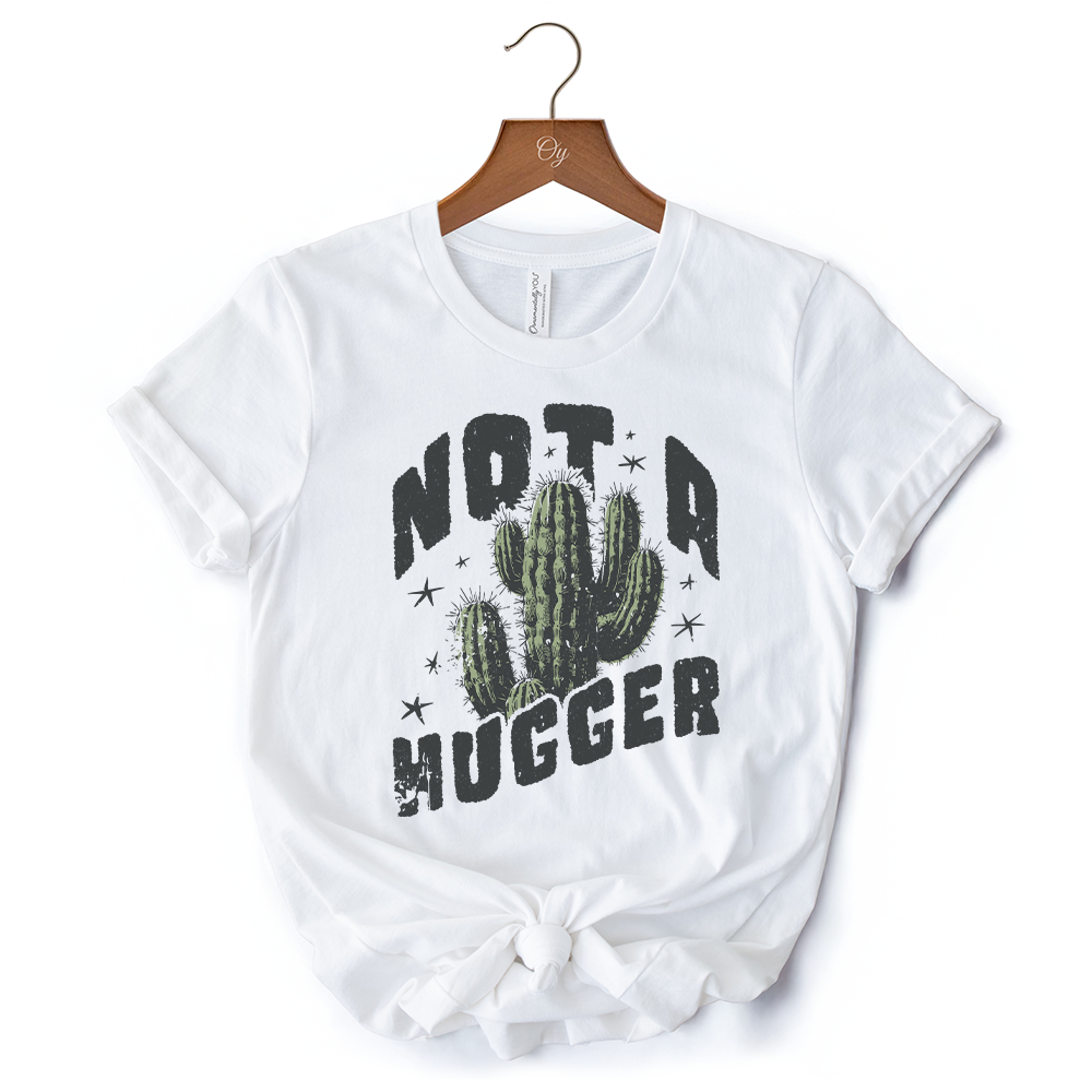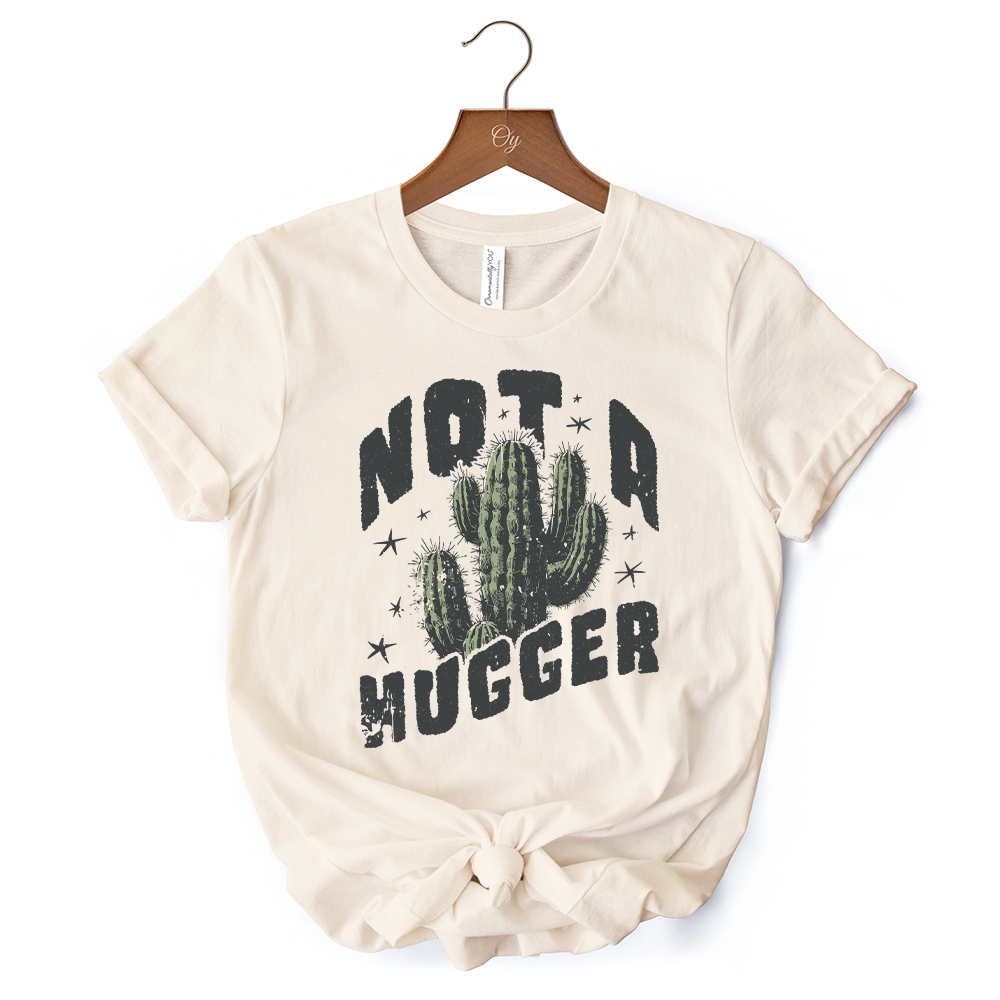 For the girl who’s not afraid to speak her mind, this retro-inspired tee brings the perfect mix of humor and style 🌵😏. Featuring a sassy cactus graphic and playful "Not a Hugger" message, this white and natural tee is perfect for those who love their personal space. Made from soft, breathable cotton, it’s comfortable enough for everyday wear—whether you’re running errands, lounging with friends, or showing off your sarcastic side at brunch. With its vintage vibe and cheeky design, this shirt is a must-have for sarcastic souls who prefer their space but still want to look cute 😎.
