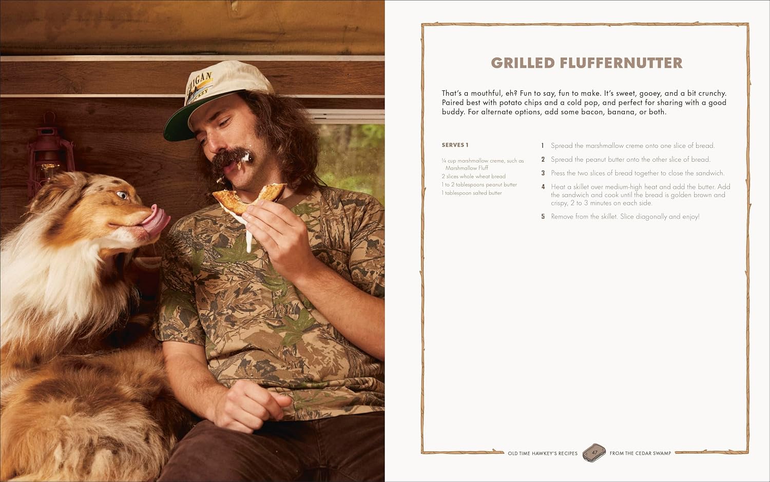 Fritz's first cookbook, Old Time Hawkey's Recipes from the Cedar Swamp, features over 100 cozy recipes divided into three categories—indoor, campfire, and companions—with comforting recipes like Pumpkin Pancakes, Dutch Oven Nachos, and Honey Cinnamon Cold Brew.
