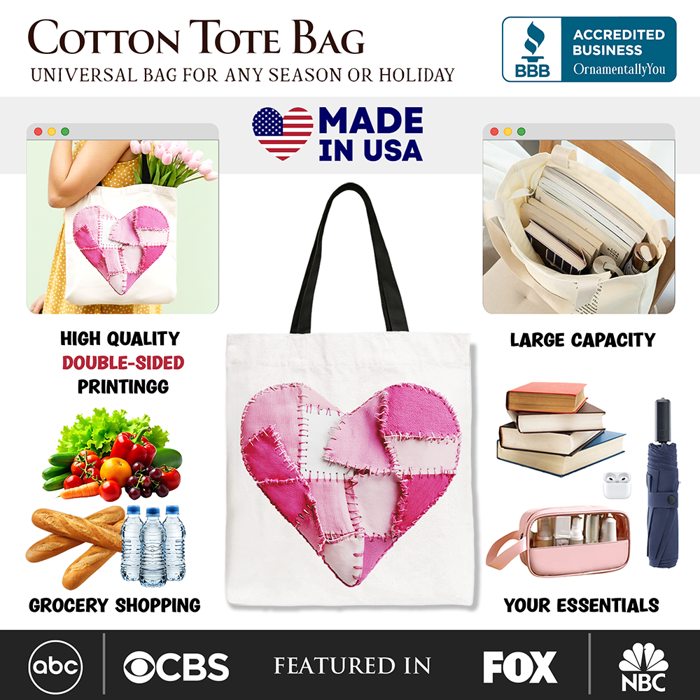This patchwork-like design pink heart canvas tote bag blends vintage Valentine charm with modern coquette aesthetics, making it a standout accessory for everyday use or thoughtful gifting 💕 Crafted from durable canvas, this reusable tote features an all-over love print with soft pink tones that pair beautifully with romantic, cottagecore, and feminine styles 🌸 Ideal as a Valentine gift bag, aesthetic shopping tote, or daily carryall, it offers both functionality and timeless appeal for fans of vintage-inspired fashion, heart motifs, and eco-friendly bags 💖