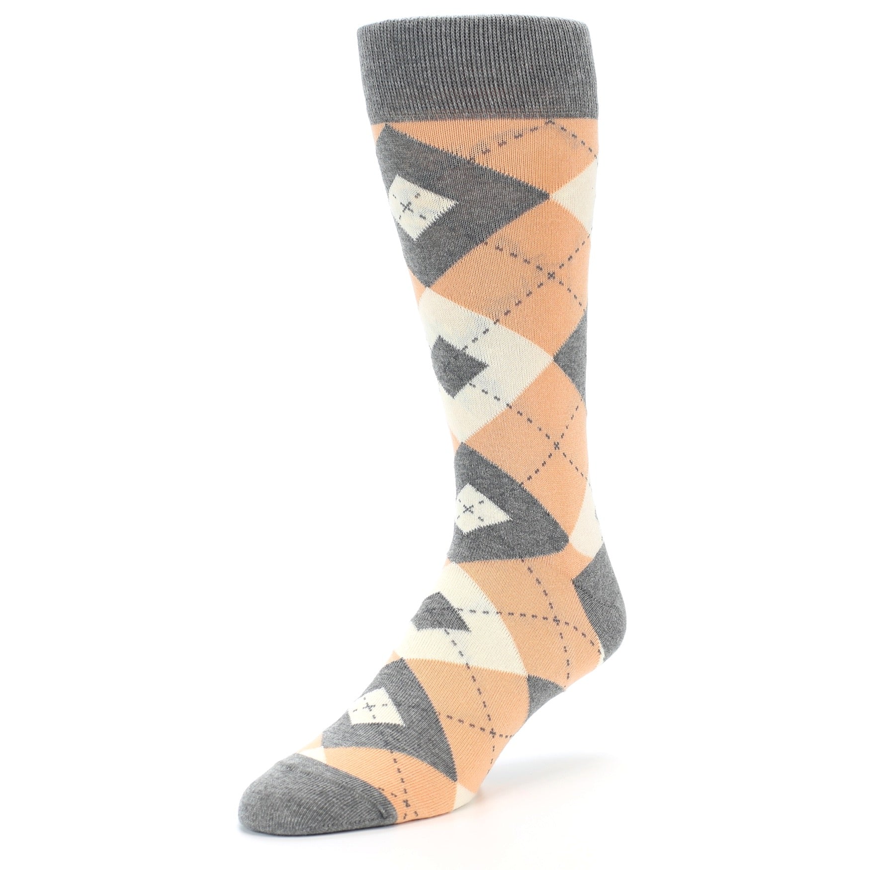 Peach Gray Argyle Wedding Groomsmen Men’s Dress Socks