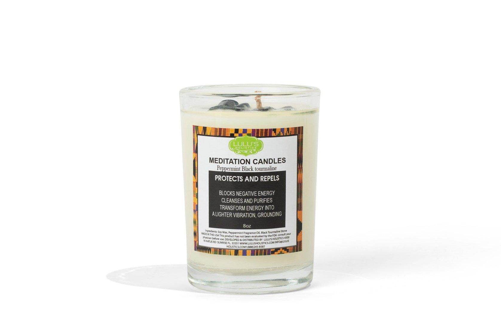 Revitalize your senses with our Peppermint Black Tourmaline Candle, infused with the crisp and refreshing scent of peppermint and crafted from eco-friendly soy wax. Topped with powerful black tourmaline stones, known for providing protection, grounding, and stress relief. Light this candle to fill your space with an invigorating aroma that refreshes and energizes, making it perfect for moments of rejuvenation or focus. Ideal for gifting or personal enjoyment.