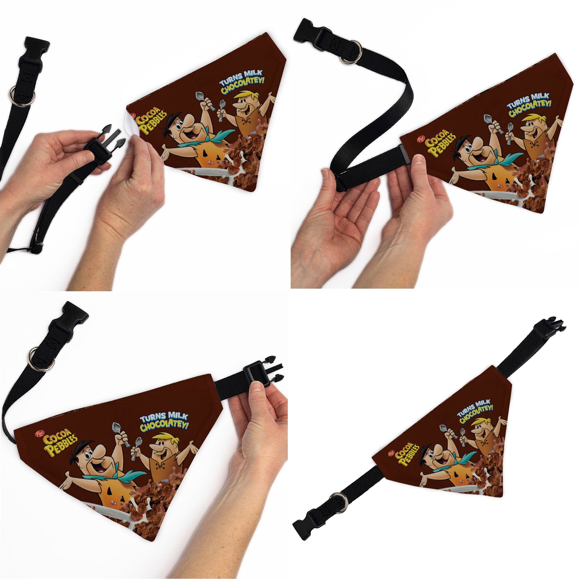 Pet Bandana - COCOA PEBBLES Fred Flintstone and Barney Rubble Cereal Box Print and Vivid Cereal Brown