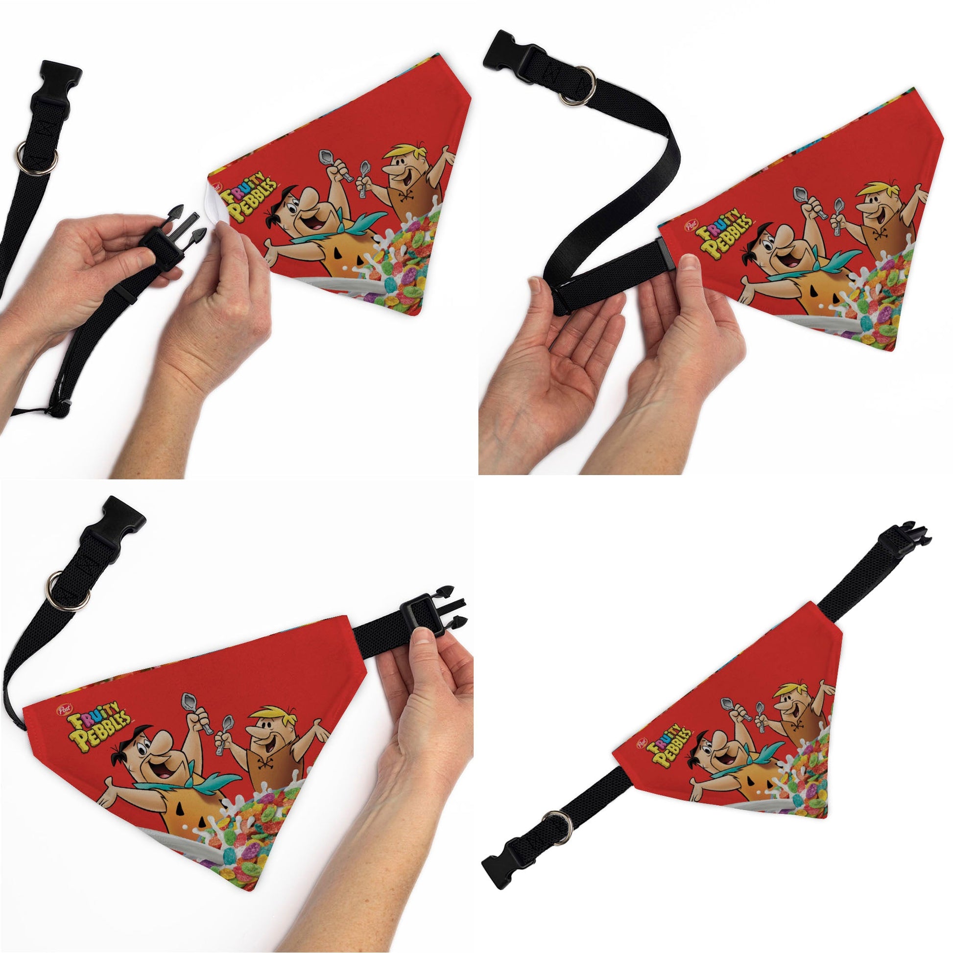 Pet Bandana - FRUITY PEBBLES Fred Flintstone and Barney Rubble Cereal Box Print and Vivid Cereal Multi Color