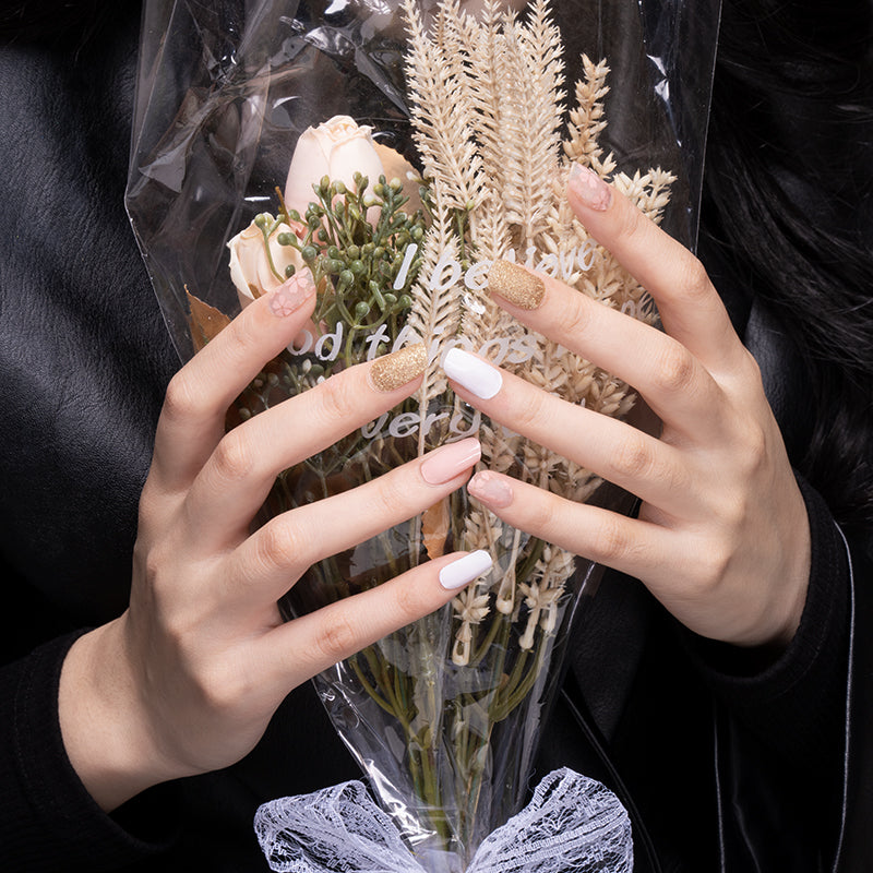 Floral nail is partially sheer.