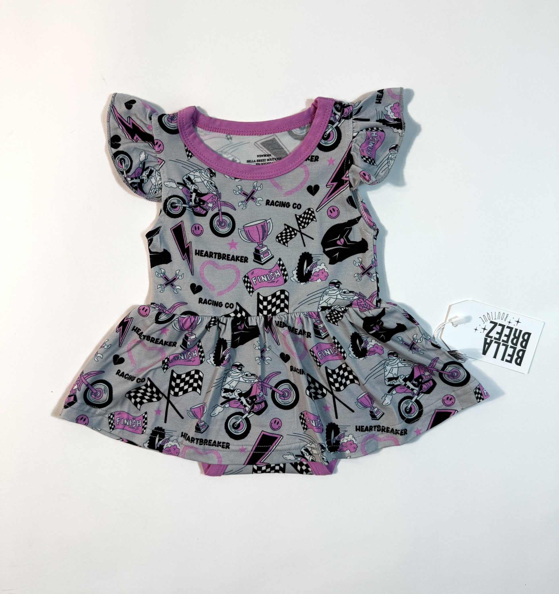 PINK Heartbreaker Racing Co Bamboo Skirted Romper