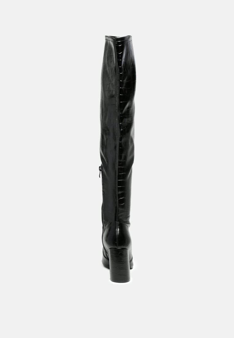 The leopard print boots are ravishing with the beautiful bold print and high quality microfiber which is soft on the skin. The high stiletto heels and pointed toe give a sharp silhouette to the long boots which is alluring and stylish. The boots have elasticated gussets for a good fit and zipper fastening for an easy to wear experience. Pair with a beautiful faux leather skirt and blouse from London Rag for a gorgeous party ensemble.