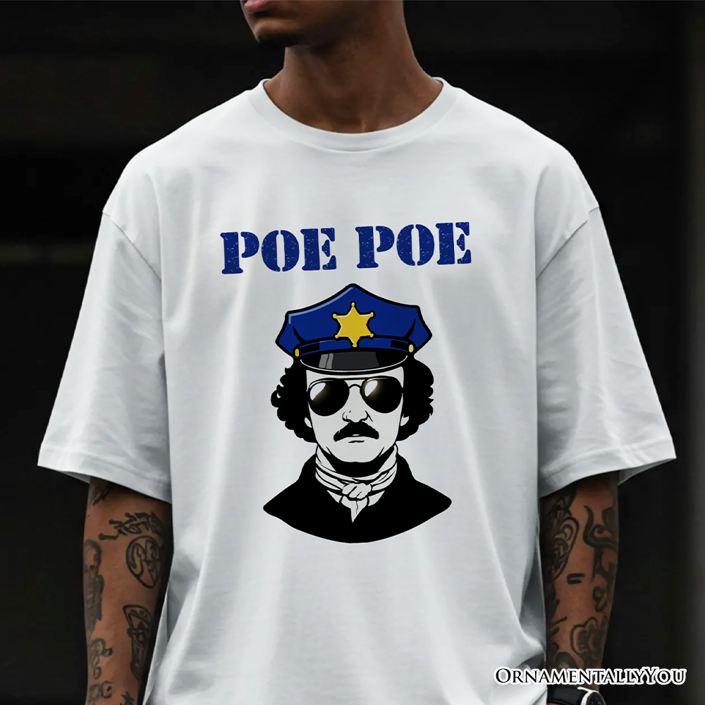 Show off your love for dark humor and classic literature with this witty and stylish tee featuring a clever police-themed twist on the legendary author of gothic horror. Perfect for bookworms, Halloween fans, or law enforcement with a literary side, this comfortable and eye-catching shirt combines clever wordplay with bold navy and white tones for maximum effect. Whether you're headed to a spooky gathering, bookstore event, or just want to spark some smiles, this tee delivers both brains and laughs. 📚👮♂️🦉🖋️