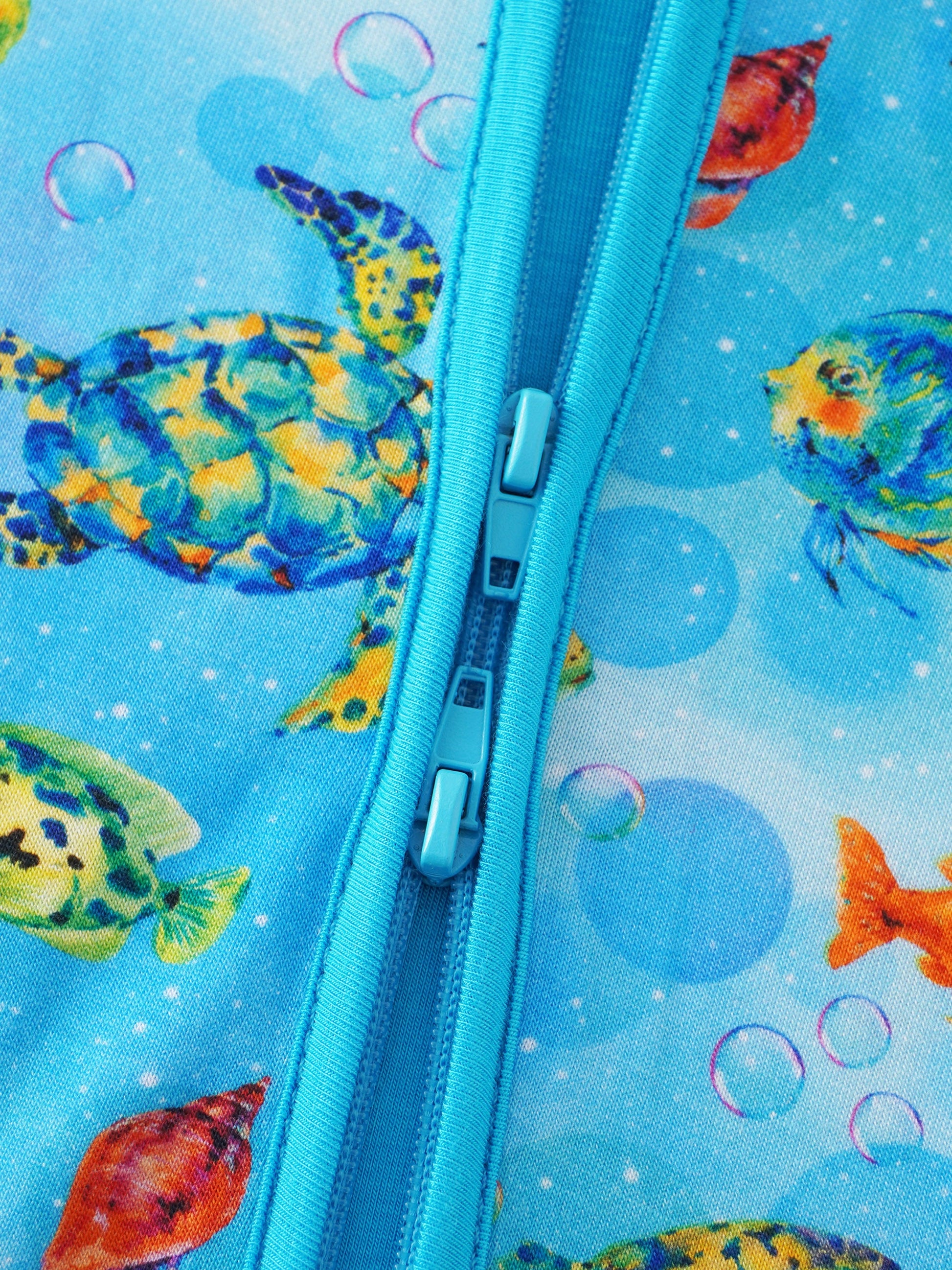 PoshTOT Little Sea turtle Bamboo Baby Convertible Zippy Romper