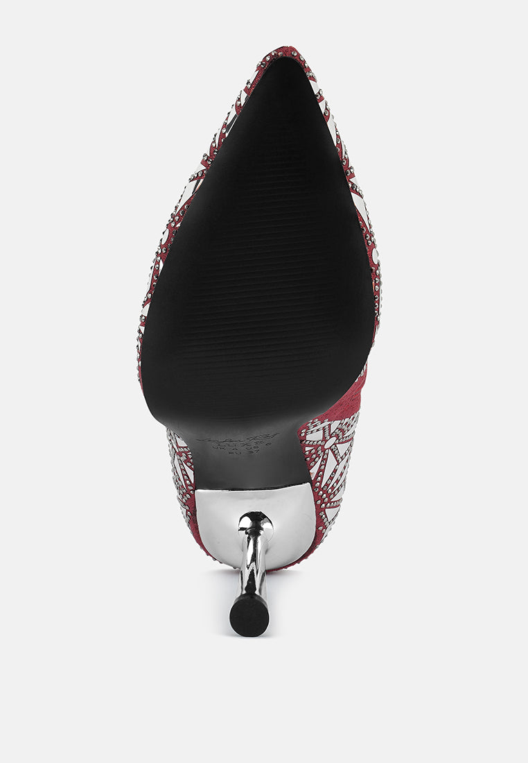 Step into this maximalist era of vogue wearing these patterned mirror embellished boots that are absolutely beautiful and sure to turn some heads their way! A showstopper piece, the boots are all about partying all night and having the best time! The lightly cushioned insoles cut strain and give you a comfortable fit.