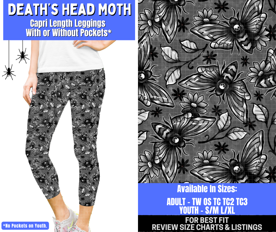 Preorder! Closes 1/26. ETA April. Death's Head Moth Capri Length Leggings w/wo Pockets