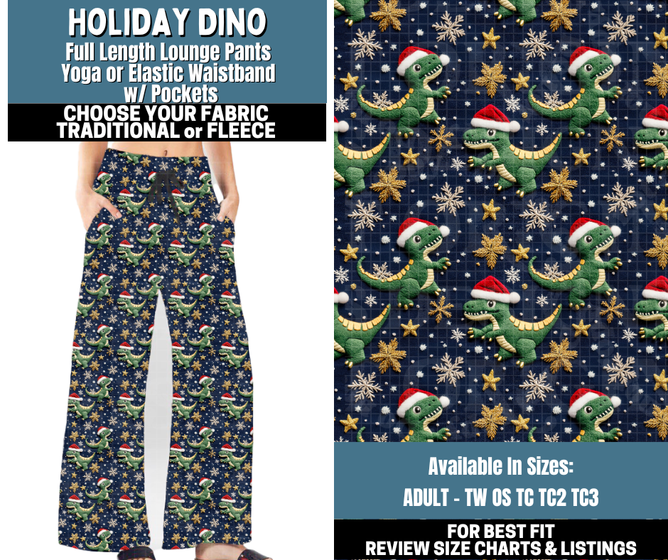 Preorder! Closes 10/13. ETA Jan. Holiday Dino Lounge Pants Choose Fleece or Traditional
