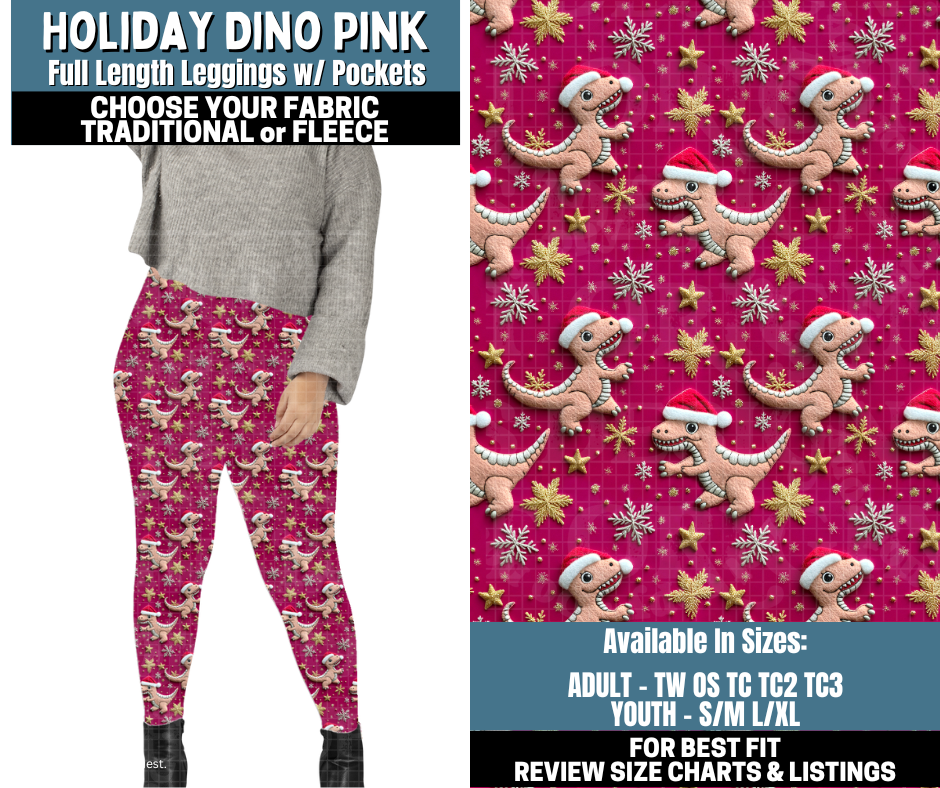 Preorder! Closes 10/13. ETA Jan. Holiday Dino Pink Leggings Choose Fleece or Traditional