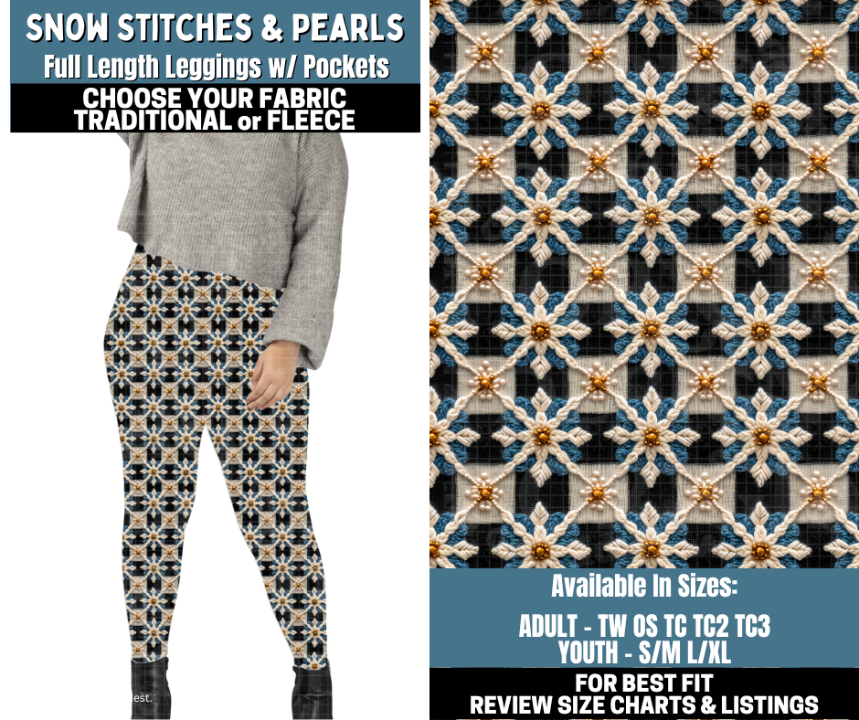 Preorder! Closes 10/13. ETA Jan. Snow Stitches & Pearls Leggings Choose Fleece or Traditional