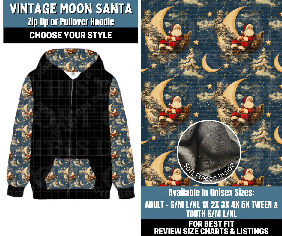 Preorder! Closes 10/13. ETA Jan. Vintage Moon Santa Zip-Up or Pullover Hoodie