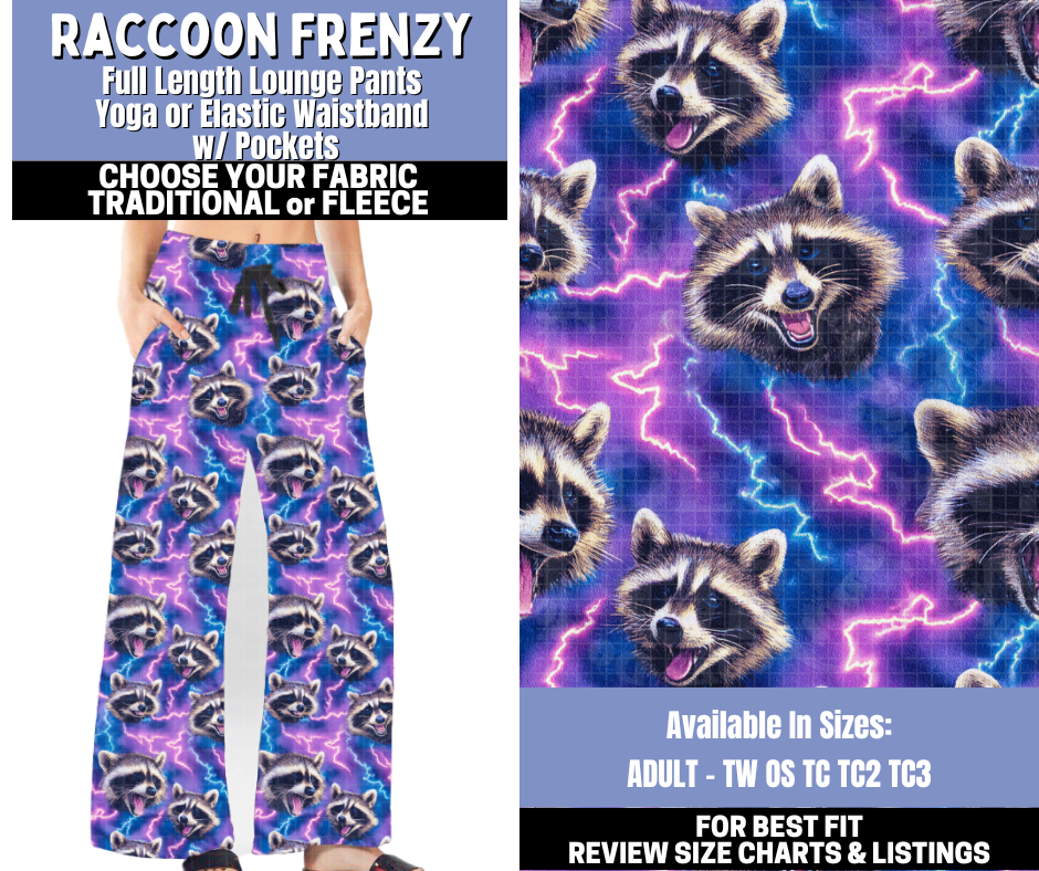 Preorder! Closes 10/30. ETA Jan. Raccoon Frenzy Lounge Pants Choose Fleece or Traditional