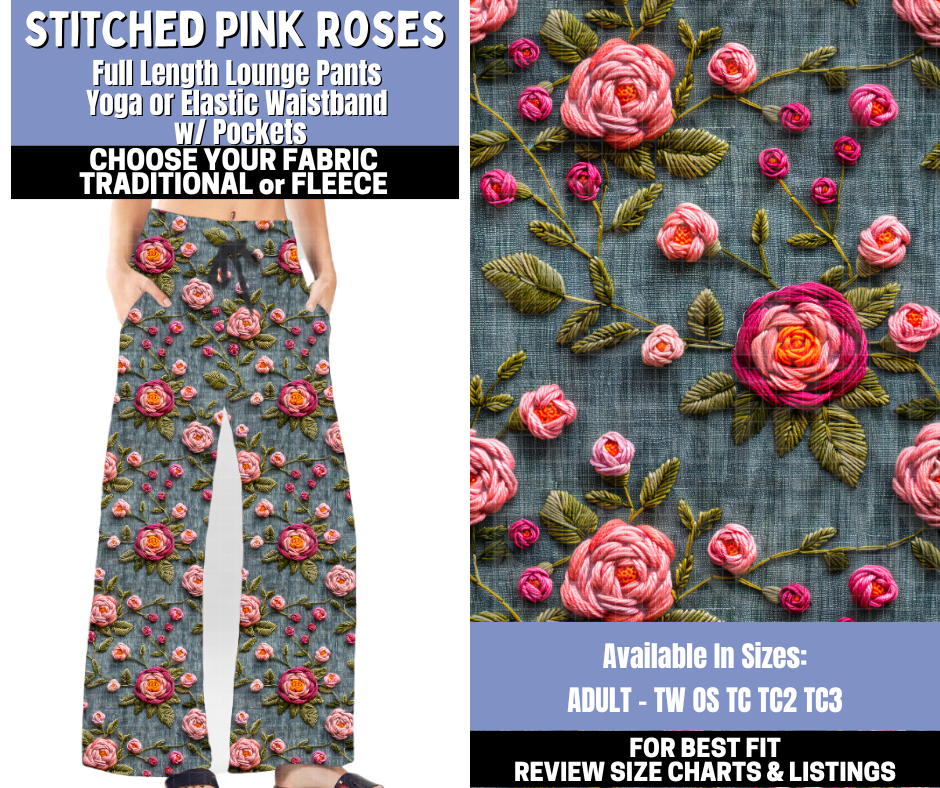 Preorder! Closes 10/30. ETA Jan. Stitched Pink Roses Lounge Pants Choose Fleece or Traditional