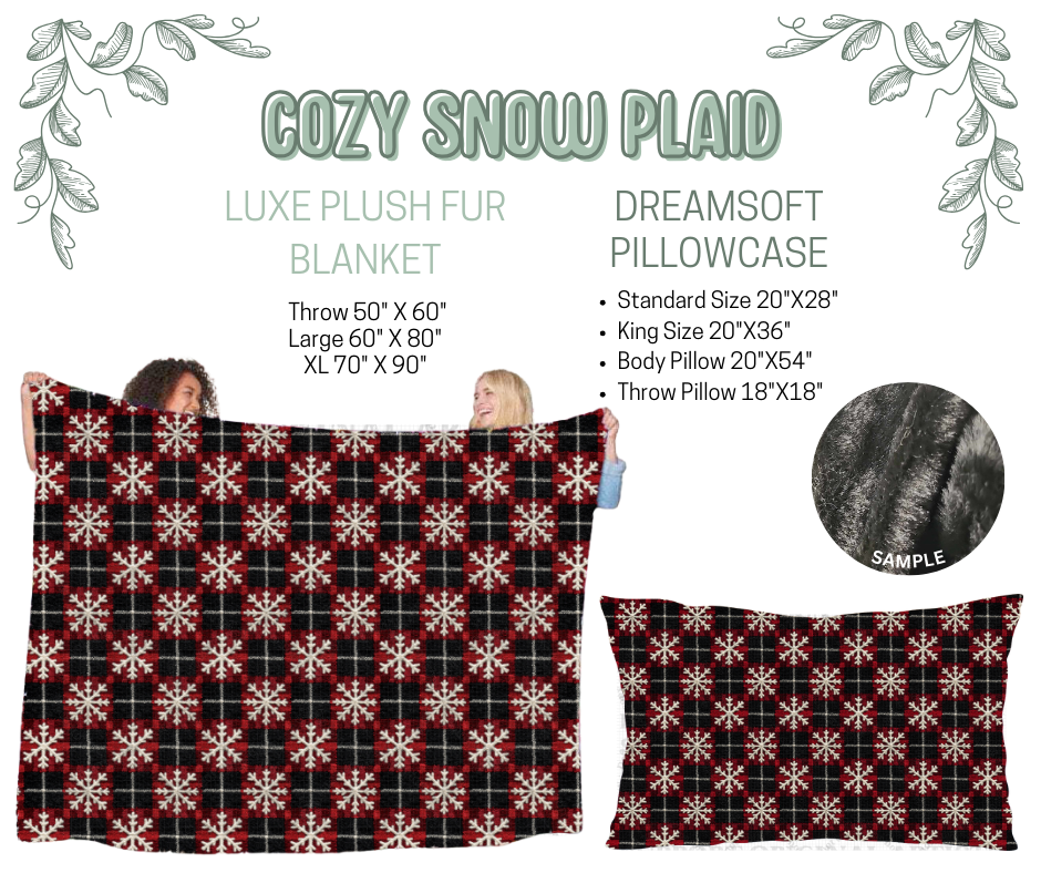 Preorder! Closes 10/9. ETA Dec. Cozy Snow Plaid Luxe Plush Fur Blanket and/or DreamSoft Pillowcase