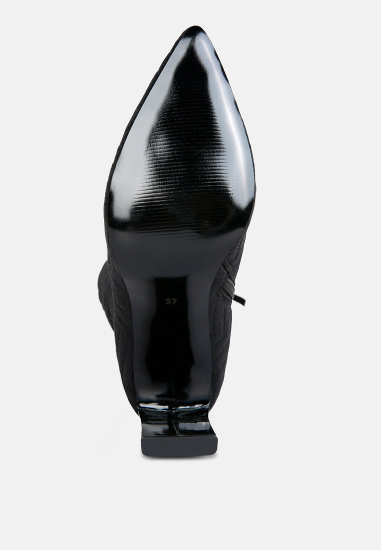 Prinkles Quilted Italian Block Heel Calf Boots are these party ready boots that can bedazzle anyone around. With chevron patterned quilting adding glamour to your wardrobe, these girls boots become a prized possession once you own them. These talk of the party high heel boots come with a side zipper opening and a lightly padded insole to make your feet comfortable and happy, dancing the night away.