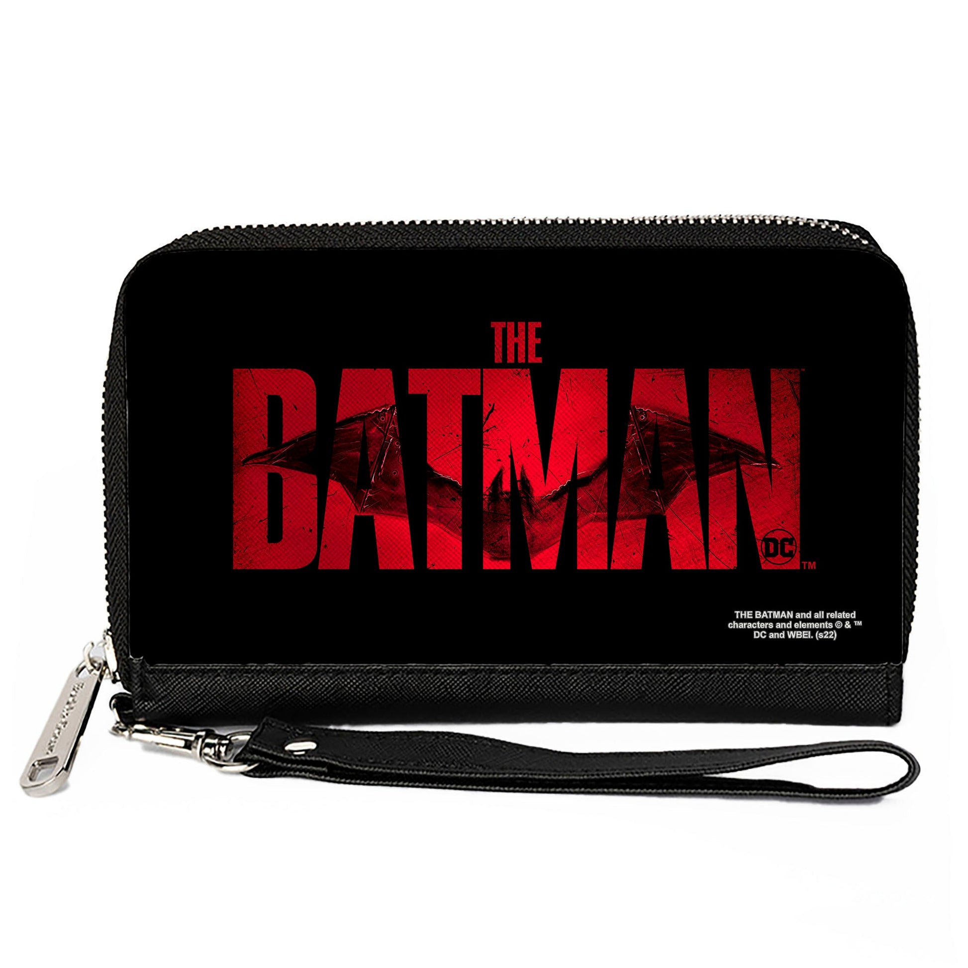 PU Zip Around Wallet Rectangle - THE BATMAN Movie Bat Title Weathered Black Red