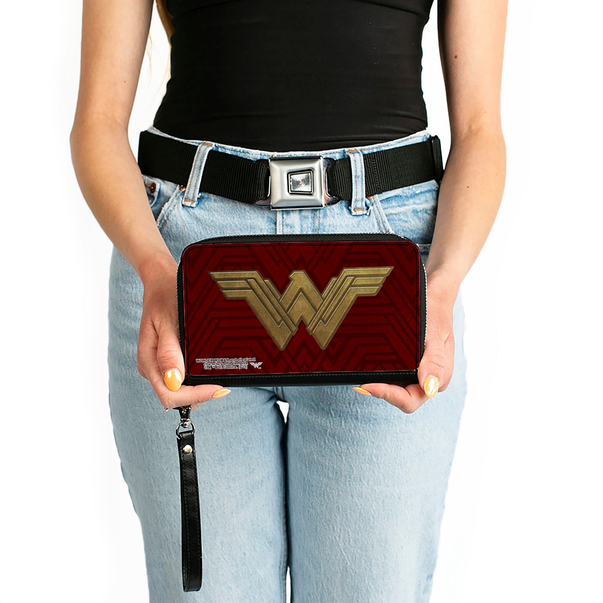 PU Zip Around Wallet Rectangle - Wonder Woman 2017 Icon Burgundys/Golds
