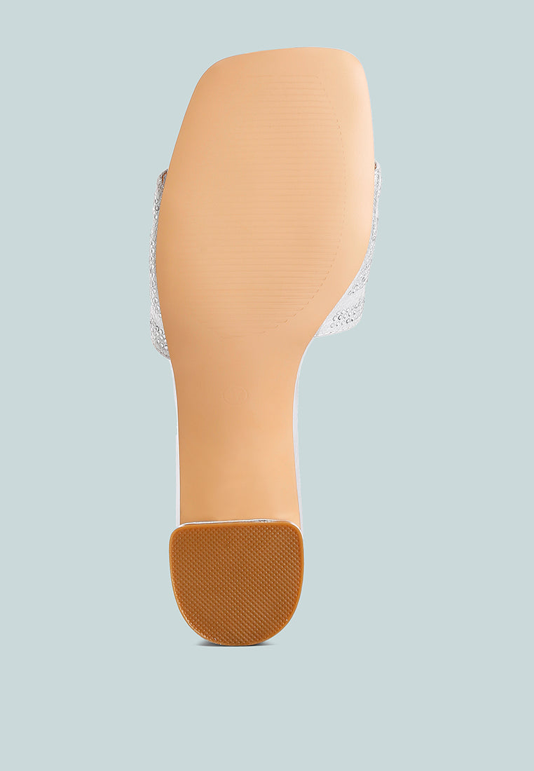 Curated with luxurious shimmer fabric, these square-toed sandals are beauty and glam combined! With comfortable low-block heels, you know you're ready for some party and quick brunches with your girl pals. Pair these 'Milan' rhinestone-embellished sandals with shorts, skirts, or midi dresses.