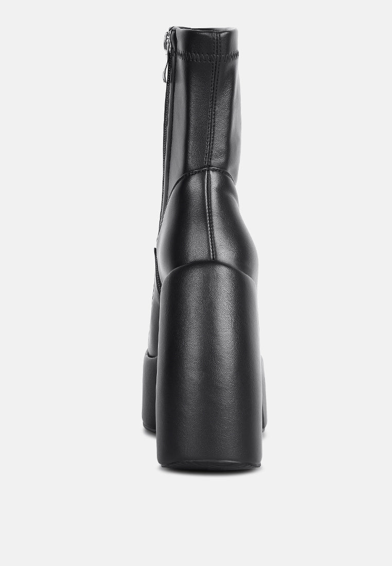 Lightweight tatement high platform boot from Rag & Co. these ankle boots have side zipper detail which makes it easy to wear. It has comfortable round toe. The stretch leatherette is ultra comfy and flexible and molds as per your feet.