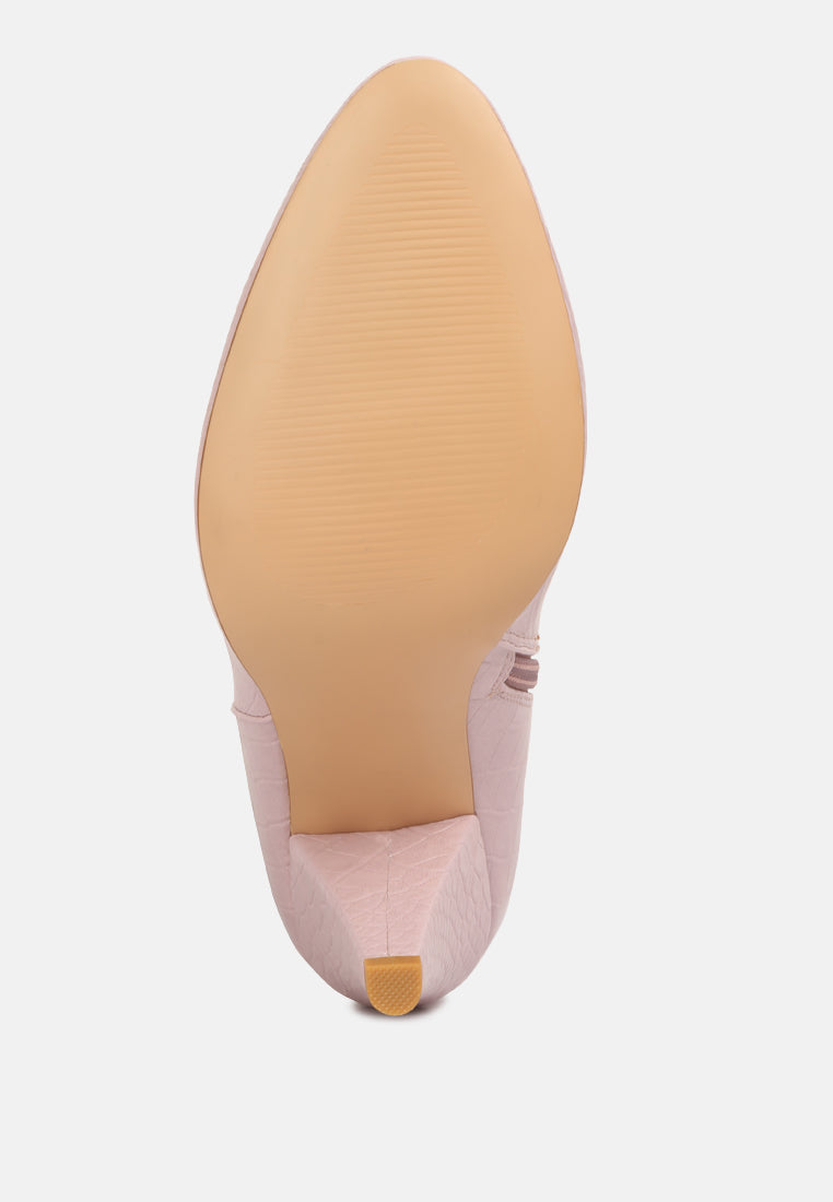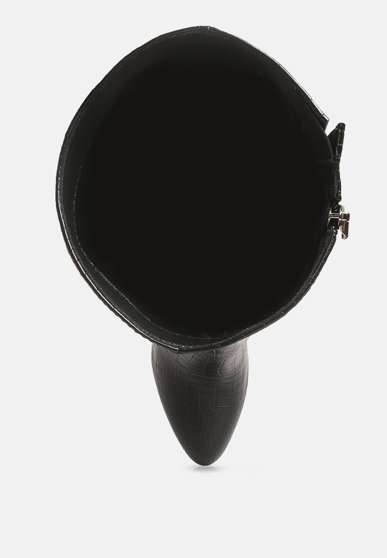 Rum Rolls Calf Croc Boots are a perfect pair for a nice winter outing. They come with lightly padded insock with panelled construction for optimum comfort. You can pair these beauties with a flowy dress, pair of tight pants, a nice overcoat, and more. So party all night long in heeled boots or go out for a lovely brunch, Rum Rolls will get your cards rolling for sure.