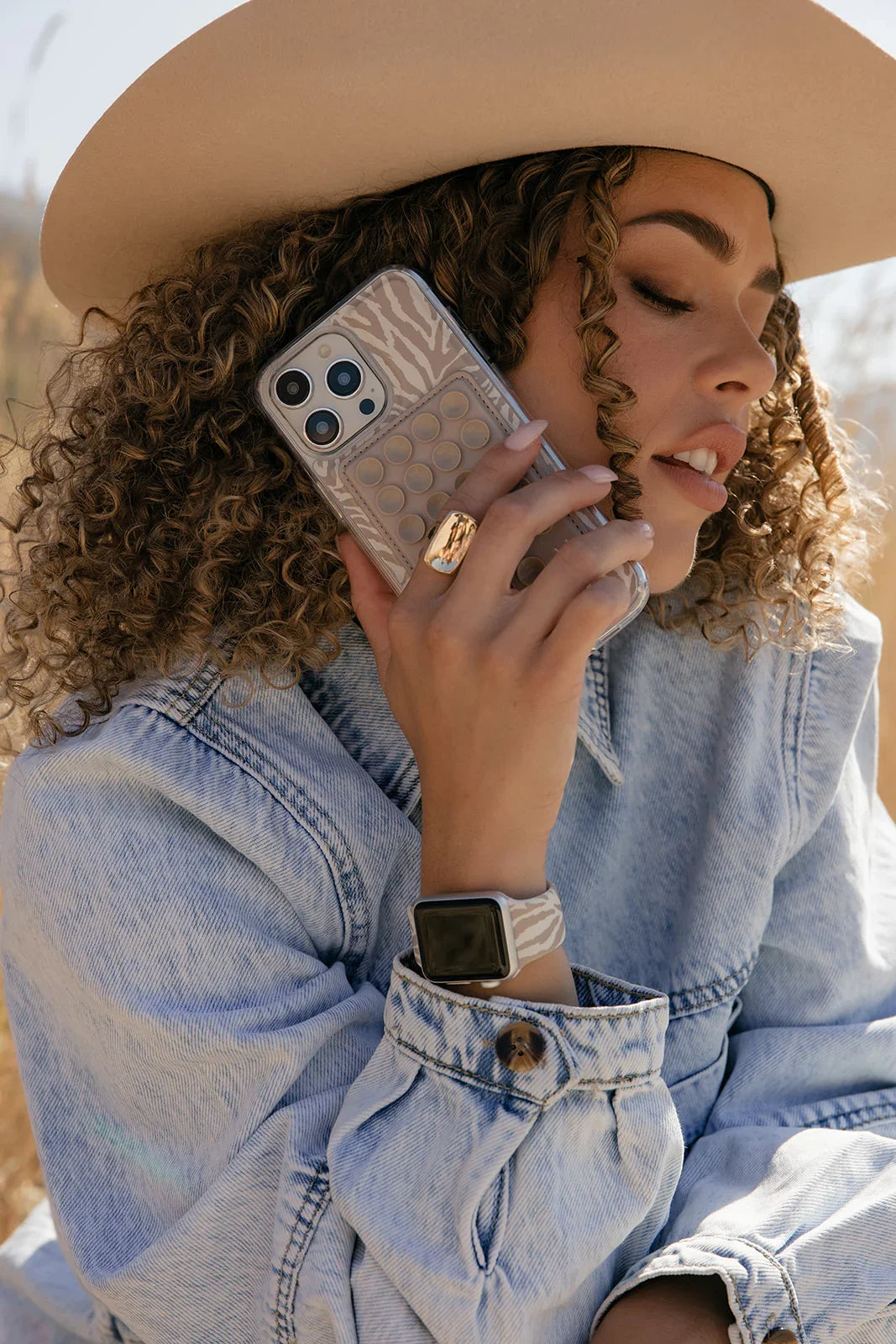 Bring style to your Apple watch with a Walli watch band. Our watchbands are made of high-quality silicone for comfortable wear all day. Pair this band with the coordinating Safari Stripes case and accessories!