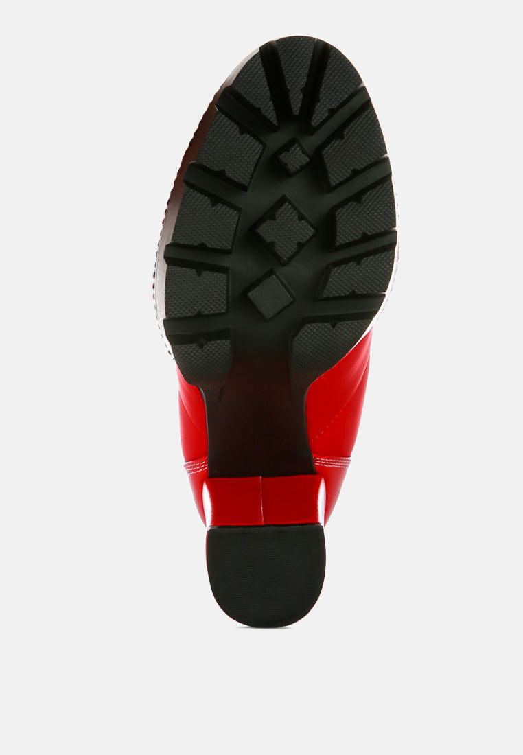 Not just a fashion icon, did you know boots grip and support your ankle for better walking posture? Our Scotch High Heeled Boots are just the boots for the season. These girls boots are rich satin quilted with metallic eyelet detail, which are badass statement boots for any biker babe. These platform heeled boots come with a lightly padded insole and a side zipper opening for optimum comfort and a lug sole giving them a rugged look.
