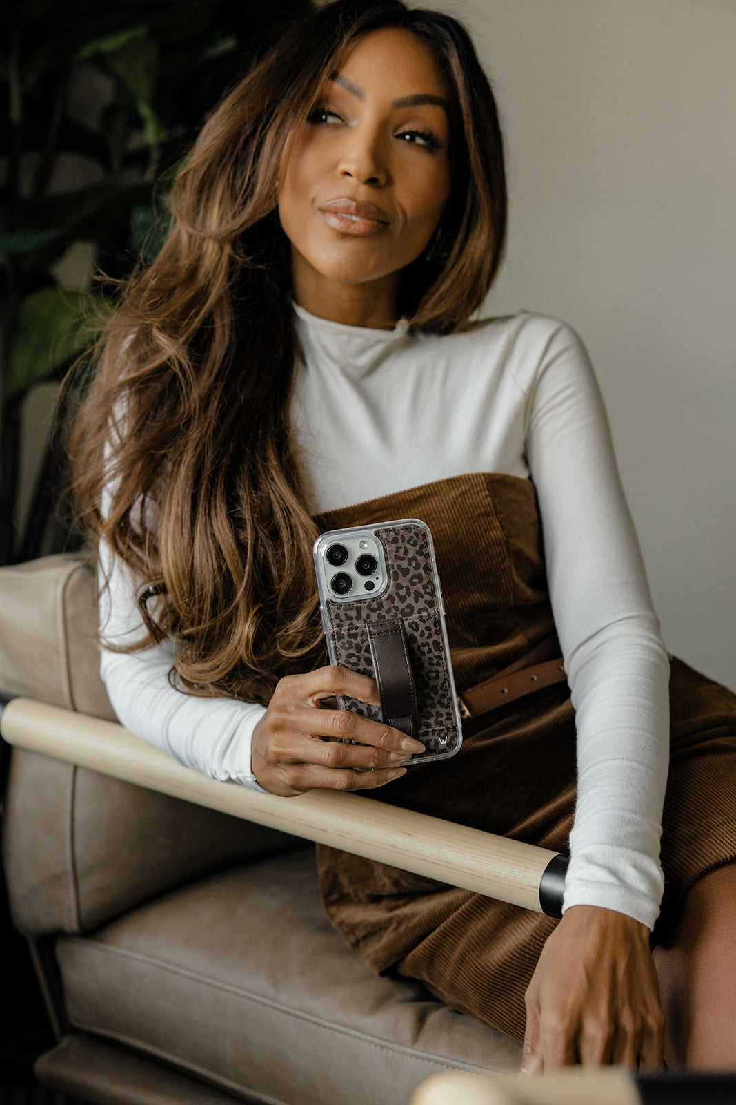 Case Design: Dark greyish brown animal print on a greyish brown background